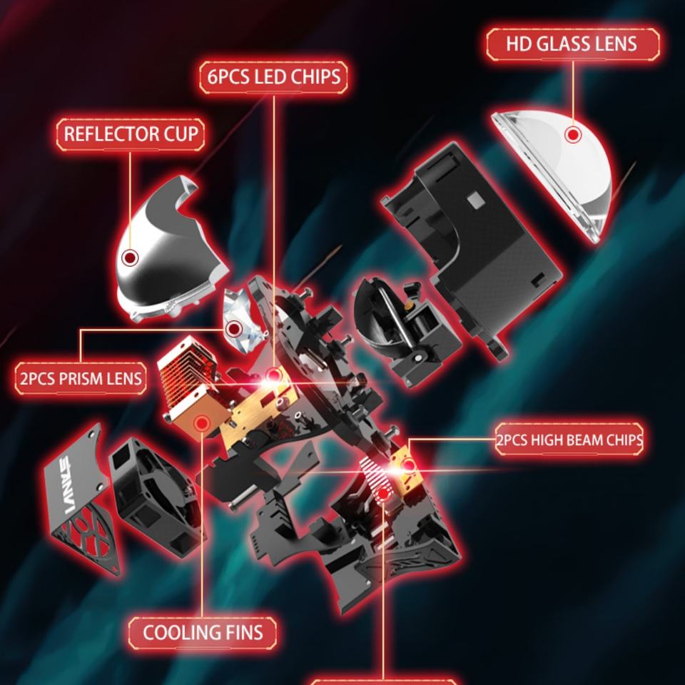 ซันวี ดีไซน์ใหม่ยอดนิยม 58W/ชิ้น โปรเจคเตอร์เลนส์ไฟหน้าแบบ Bi LED T11 12V รุ่น 3.0 พร้อมปริซึมคู่ สว่างพิเศษและทรงพลัง