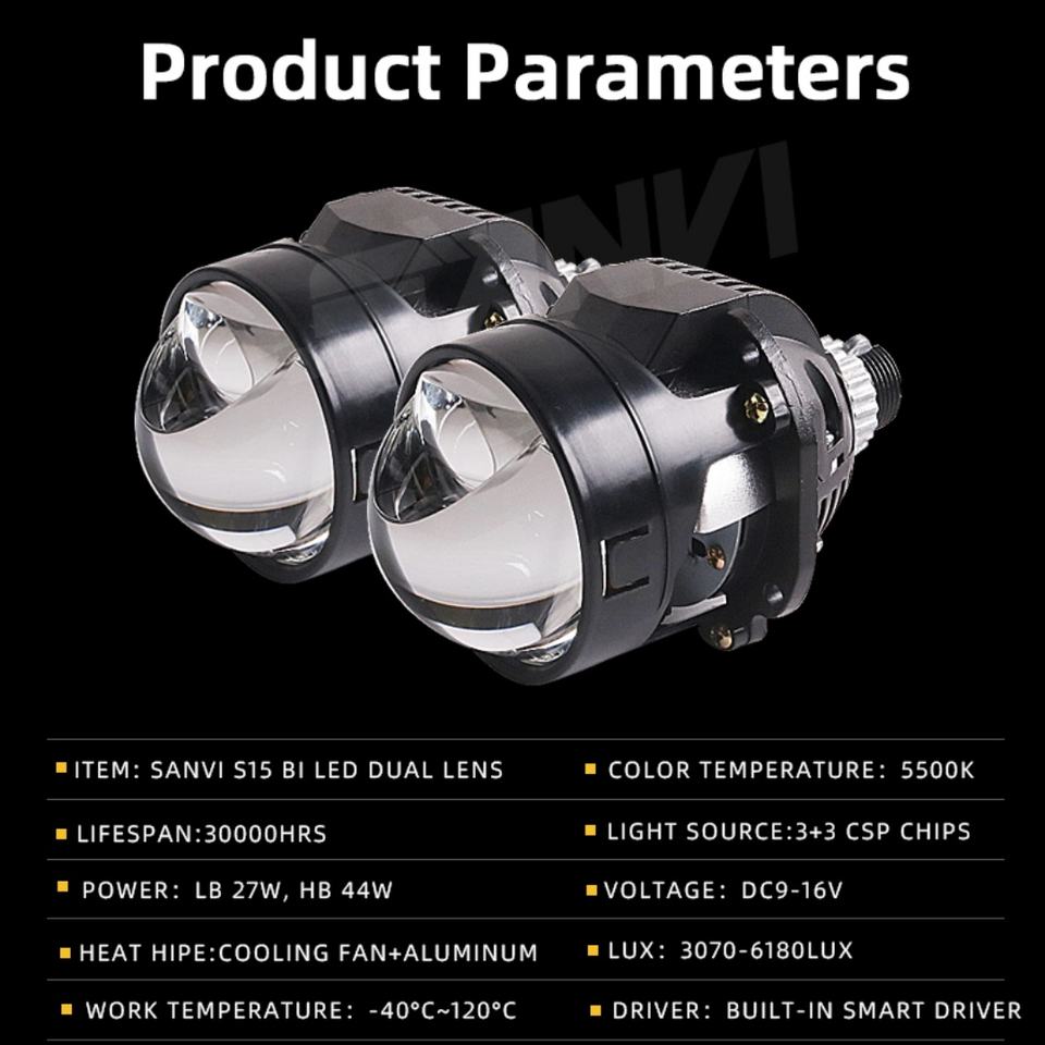 Sanvi S15 2.5 Inch Bi LED Projector Lens Headlight Retrofit Kits Matrix LED Module Aftermarket Automotive LED Headlamp Convert