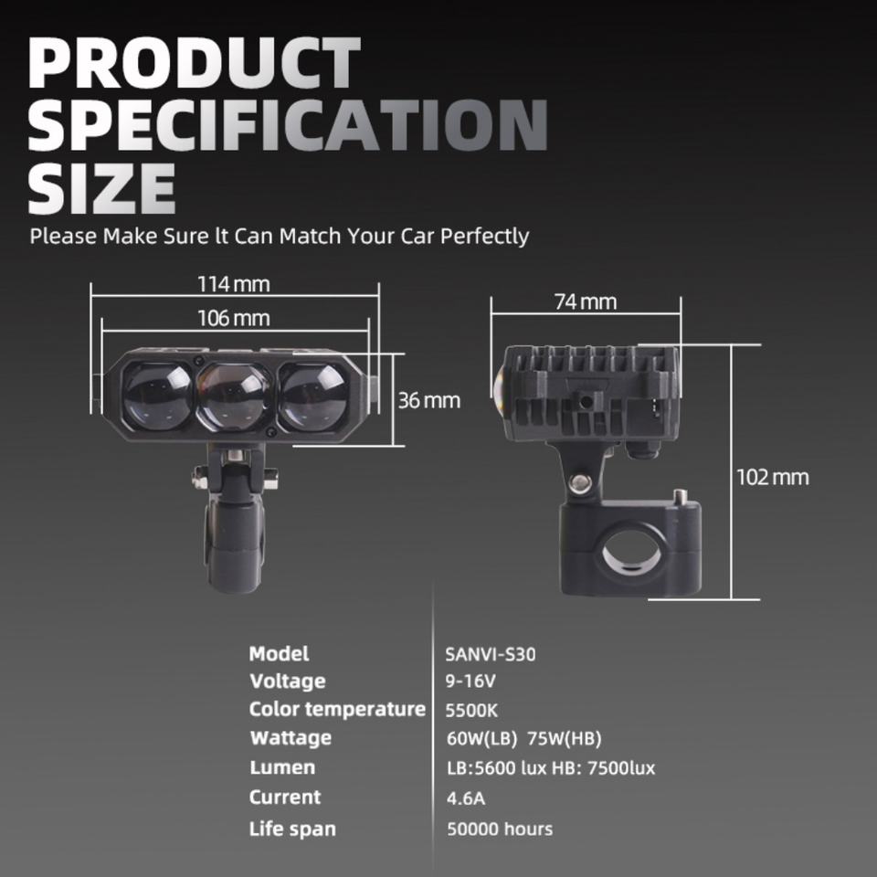 ไฟสปอร์ตไลท์ LED Sanvi S30 ราคาโรงงาน สีขาว ไฟหน้ากันน้ำ ไฟตัดหมอก/ไฟทำงาน สำหรับรถยนต์และมอเตอร์ไซค์