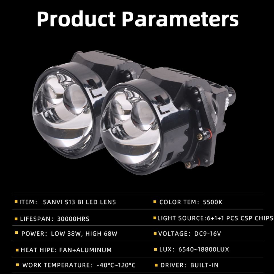 ไฟหน้าโปรเจคเตอร์ Sanvi Smart 3 นิ้ว รุ่น S13 Bi LED เลนส์คู่ สำหรับรถยนต์ ขายส่งออนไลน์ 68w 5500k แสงสว่างสูงพิเศษ