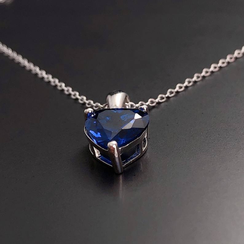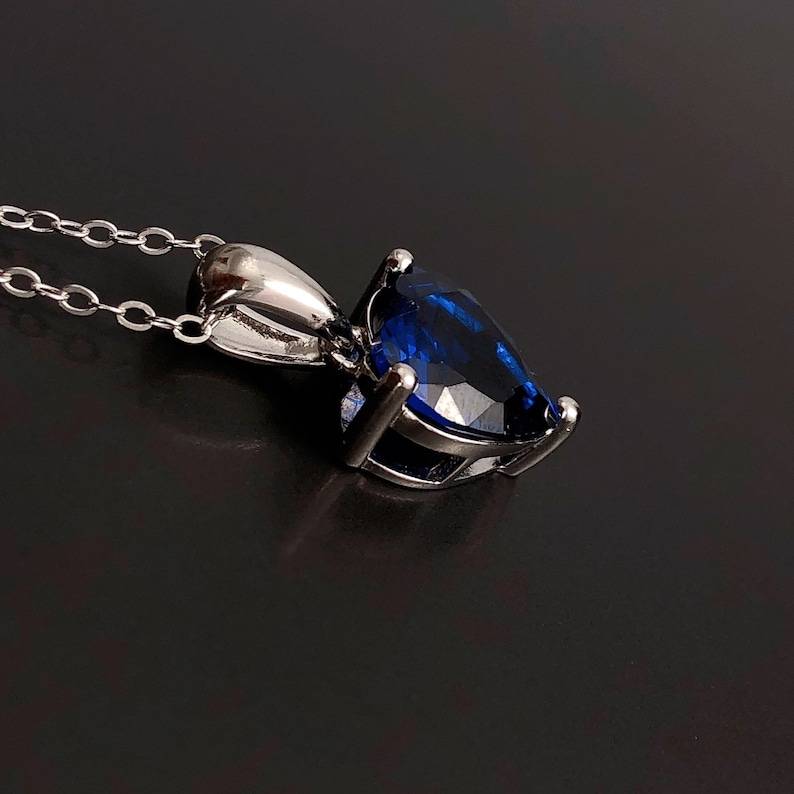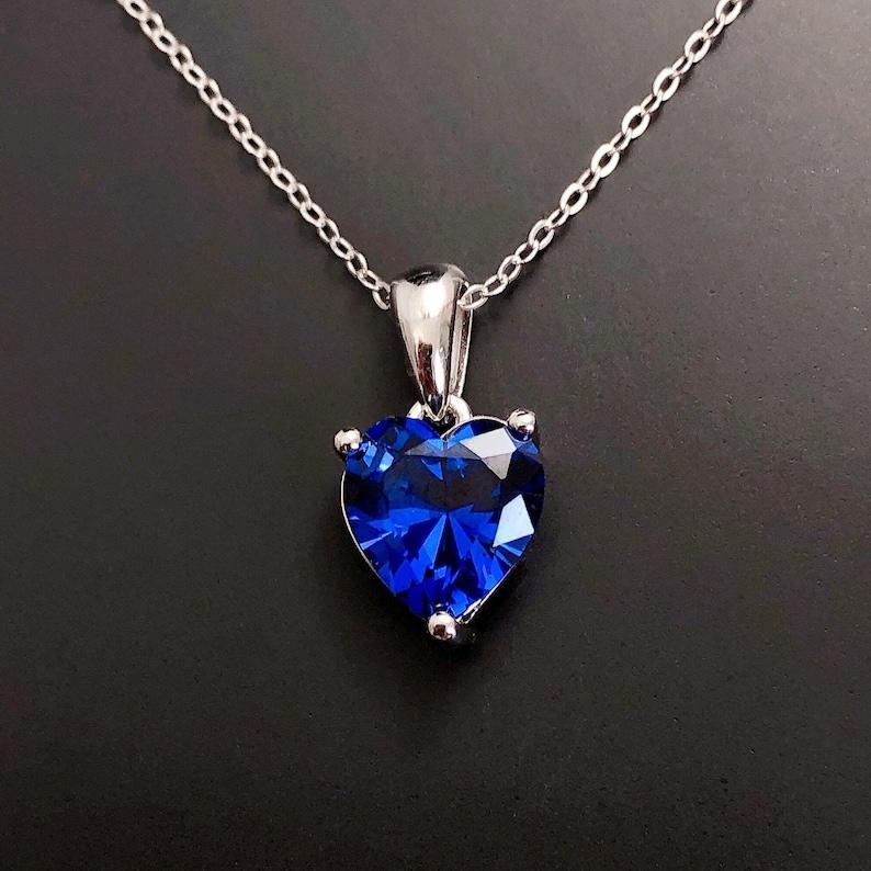 สร้อยคอไพลินเงินแท้รูปหัวใจ ประดับพลอยประจำเดือนกันยายน ของขวัญวันเกิด/วันครบรอบสำหรับผู้หญิง