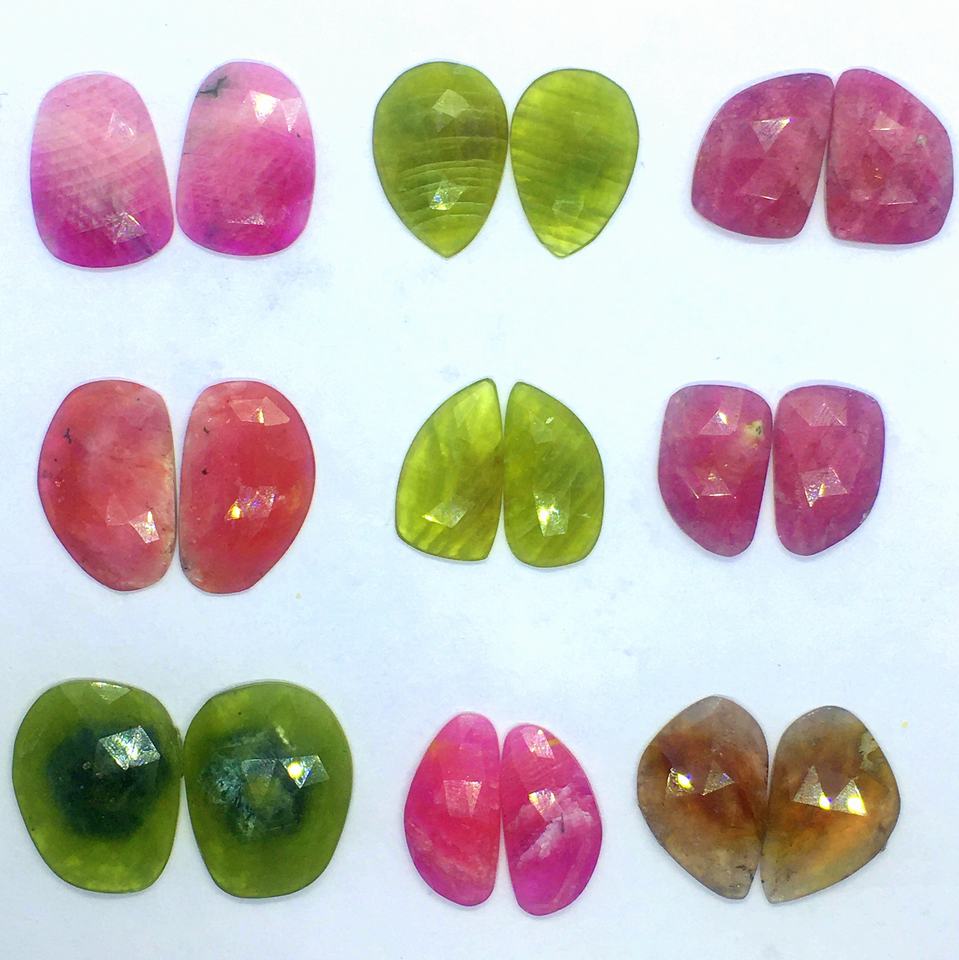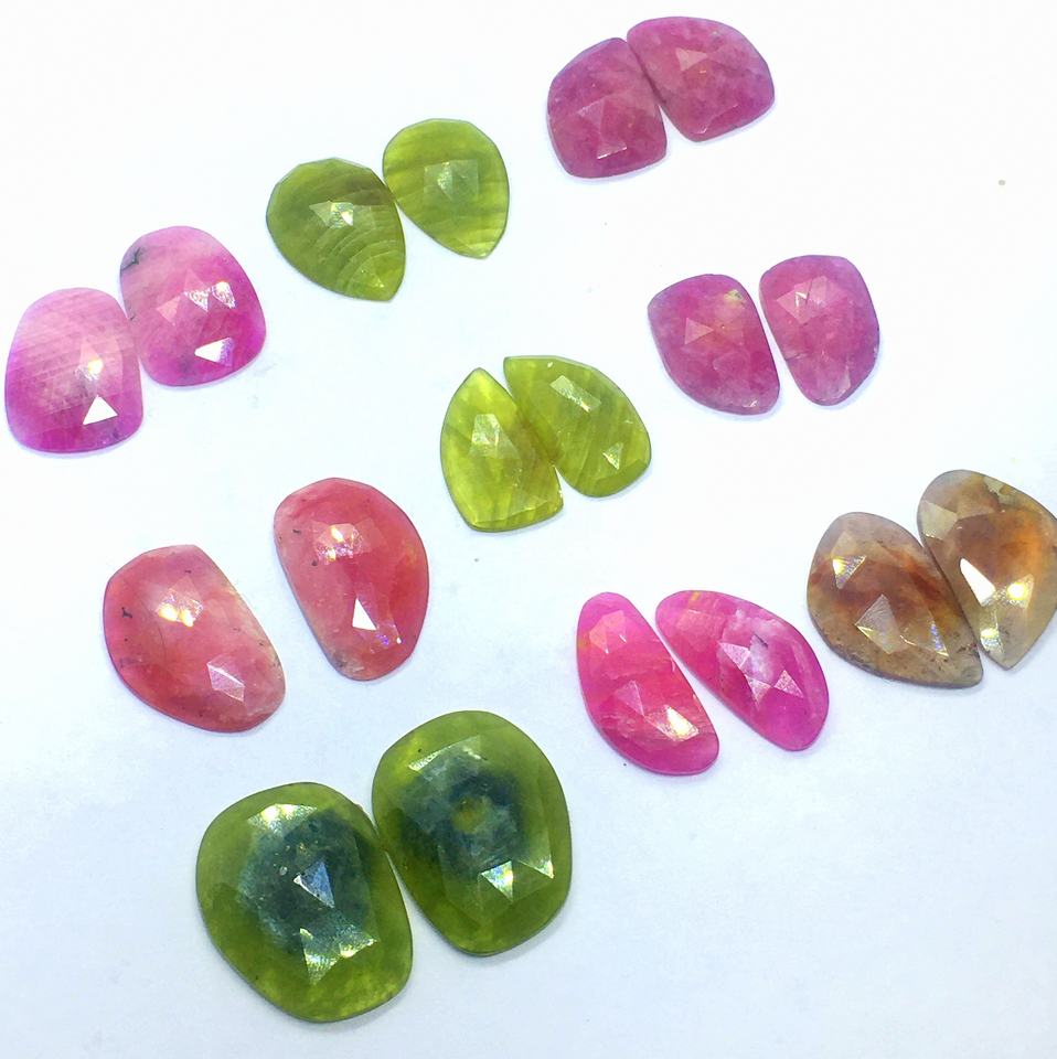 พลอยไพลินธรรมชาติเกรด AAA หลากสี รูปทรงแคโบชองแบบไม่สม่ำเสมอ เจียระไนแบบเหลี่ยม ไม่มีรู รับรองโดยผู้ตรวจสอบอิสระ ขายส่ง