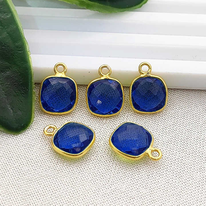 จี้ทรงคุชชั่นขนาด 8 มม. ทำจากแซฟไฟร์ควอตซ์ ตัวเรือนเงินแท้ 925 ชุบทอง งานแฮนด์เมด สำหรับทำเครื่องประดับ