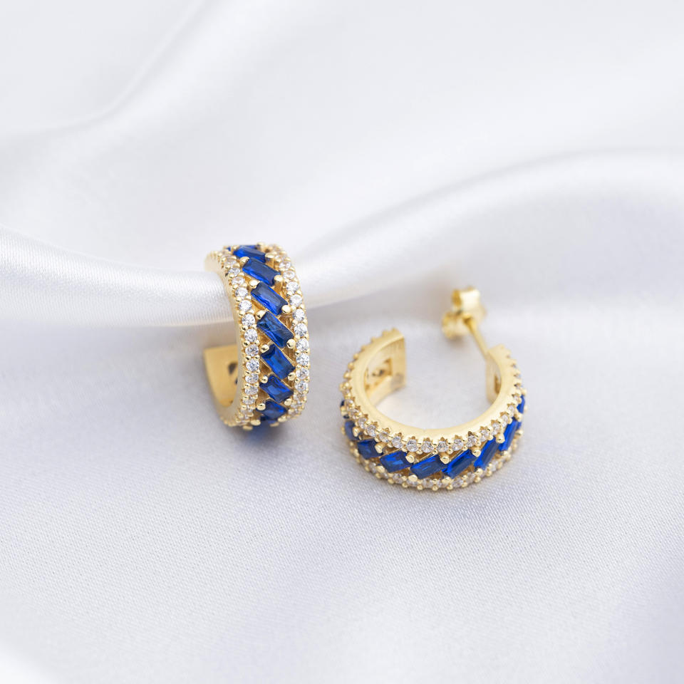 Sapphire Zircon Stone Baguette Shape Hoop Earring Wholesale Handcrafted Turkish 925 Silver Fine Jewelry
