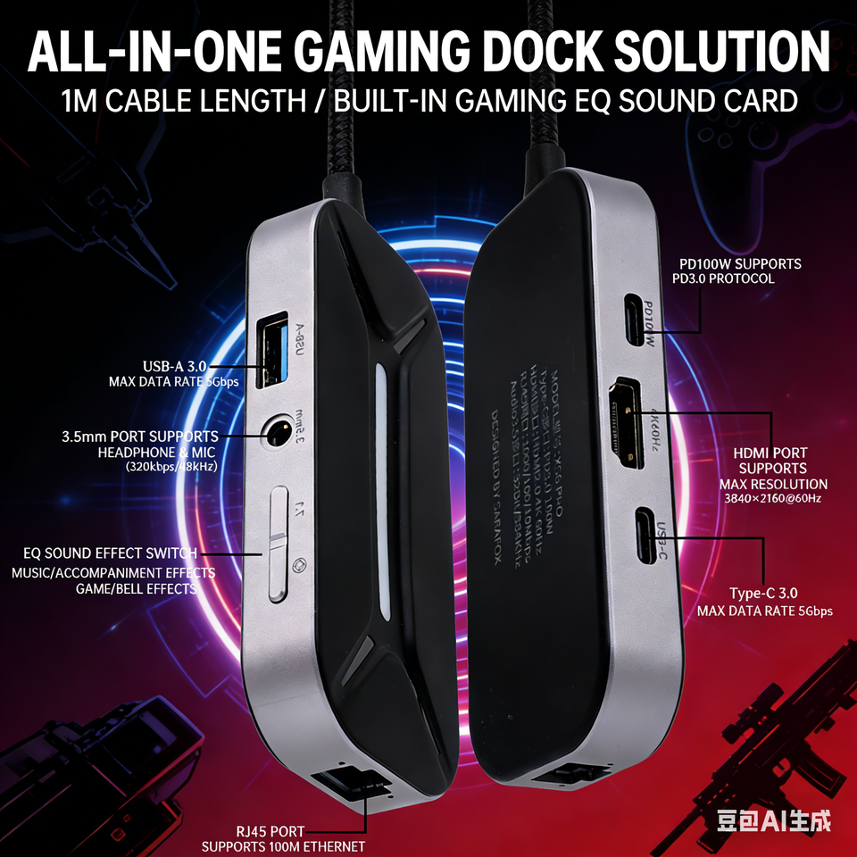 Sarafox XS6 USB-C Hub 6in1 Type c to 3.5mm Audio with 1000mbp Rj45 HDM Network and PD60W Charging 3.0 Adapter 3.5MM+RJ45+PD100W