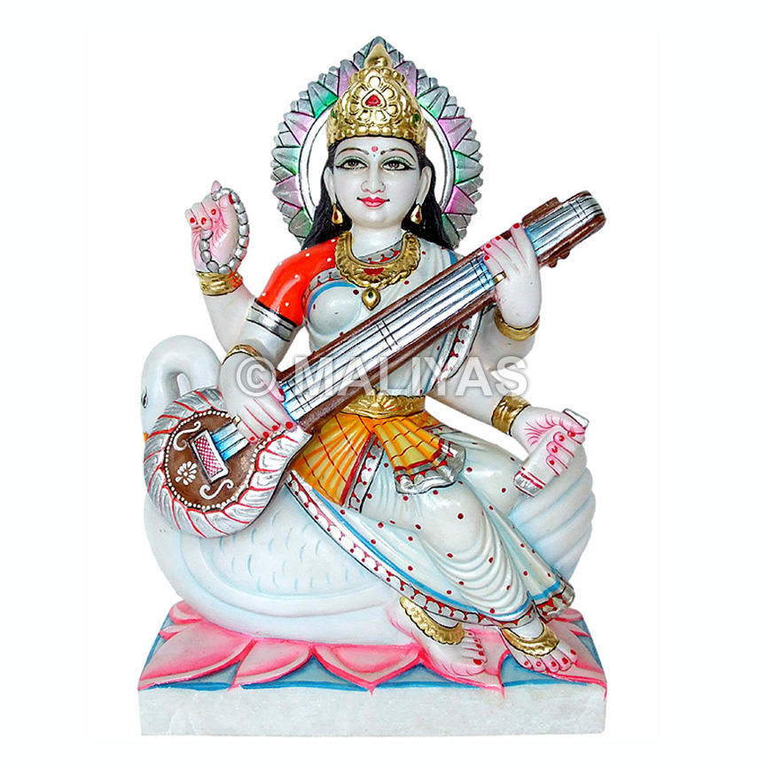 หินอ่อนสีขาวรูปรูปโสร่ง | งานทำมือ saraswati Mata Murti สำหรับบ้านและวัด-มาลายา