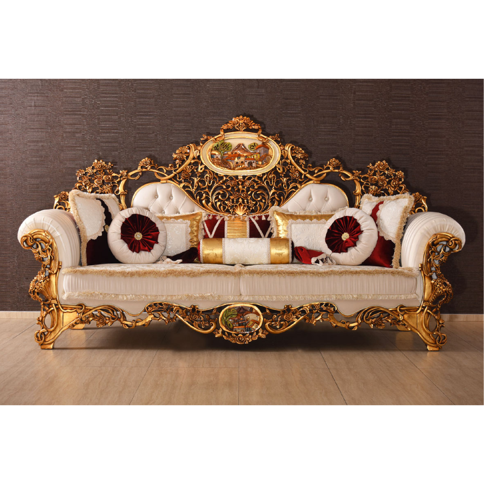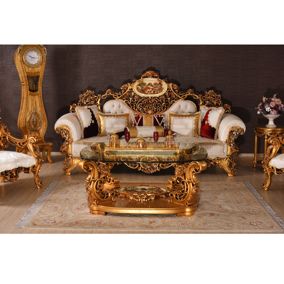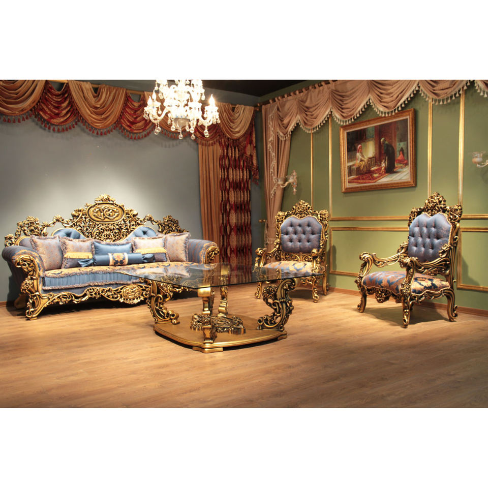 ชุดโซฟาคลาสสิก Sarayli ทำจากไม้สักแท้คุณภาพสูง พร้อมเบาะหุ้ม สำหรับเฟอร์นิเจอร์ห้องนั่งเล่น