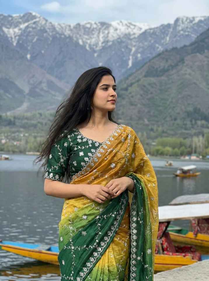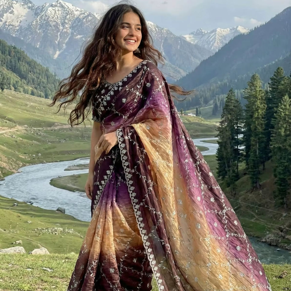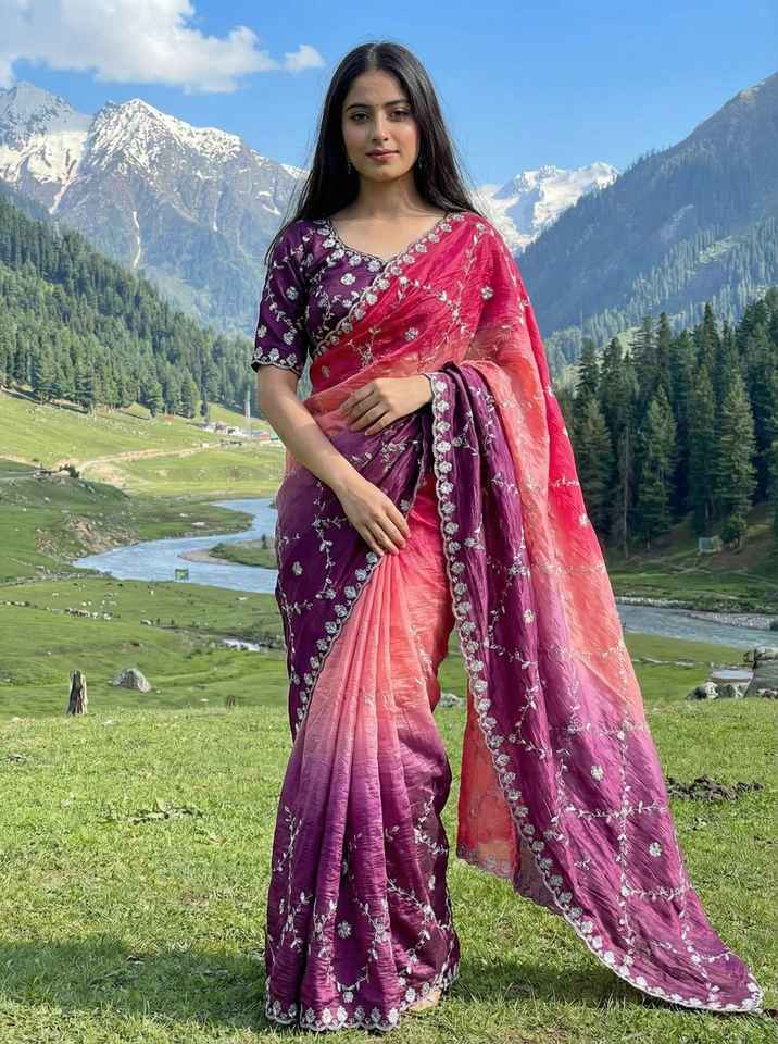 ผ้าส่าหรีปักลายขอบและทั่วผืน สีสวยงาม เหมาะสำหรับงานปาร์ตี้ ขอบผ้าส่าหรีประดับเลื่อมทั้งผืน