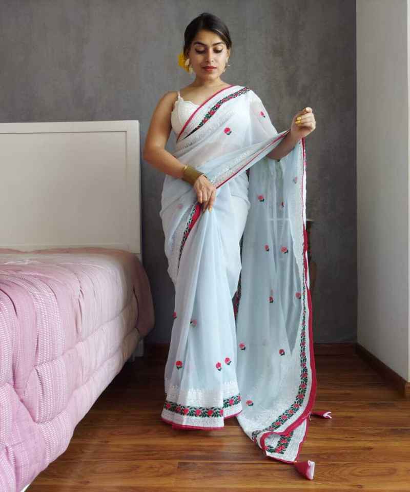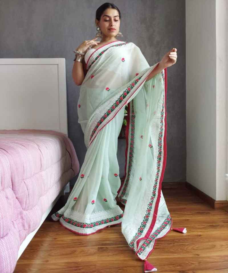 ผ้าฝ้าย, ผ้าไหม, ผ้าลินิน, โพลีเอสเตอร์, ไหมสังเคราะห์, สารละลาย้เหนียว, ผ้าขนสัตว์ชนิดหนึ่ง, ไนลอน, Pallu Chinon และกระโปรง rangoli, georgette, ชีฟอง, Chinon, ผ้าไหมฐานผ้าวัสดุ