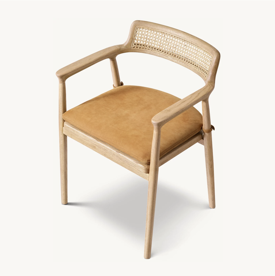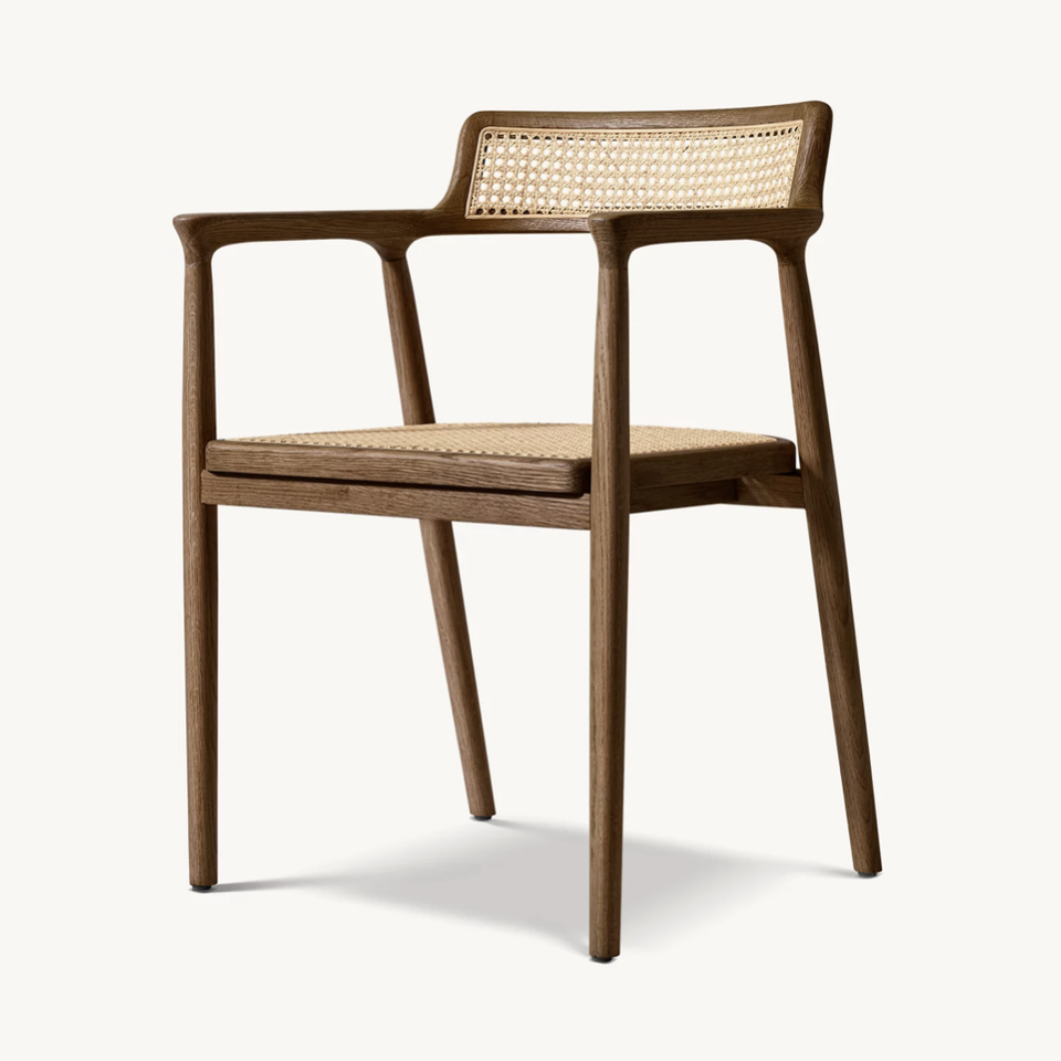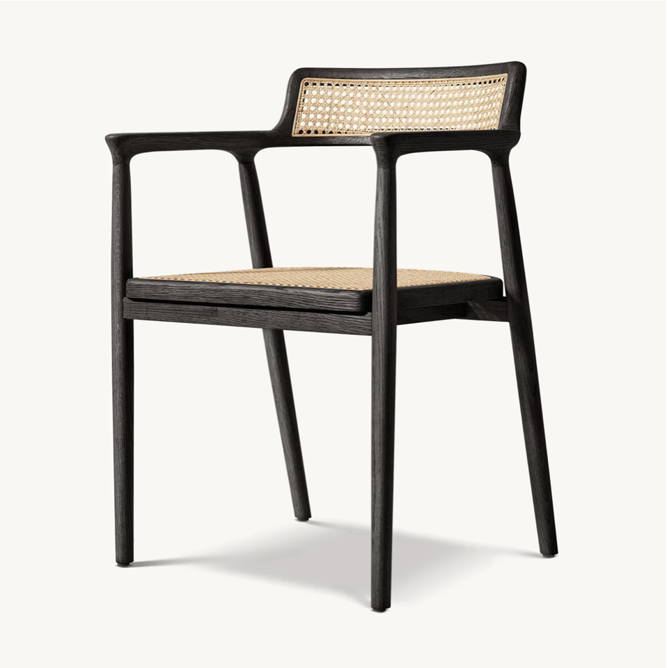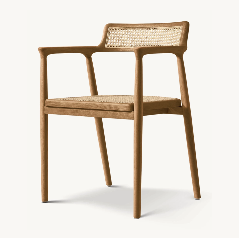 เก้าอี้ทานข้าวดีไซน์เดนมาร์กแบบ OEM ของแซซานิด เก้าอี้ทานข้าวแบบมีพนักแขนสไตล์อเมริกันสมัยใหม่ รุ่นออสการ์ แคน