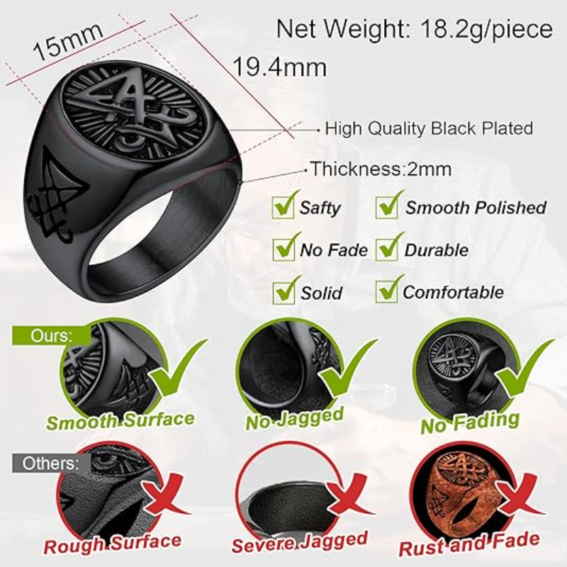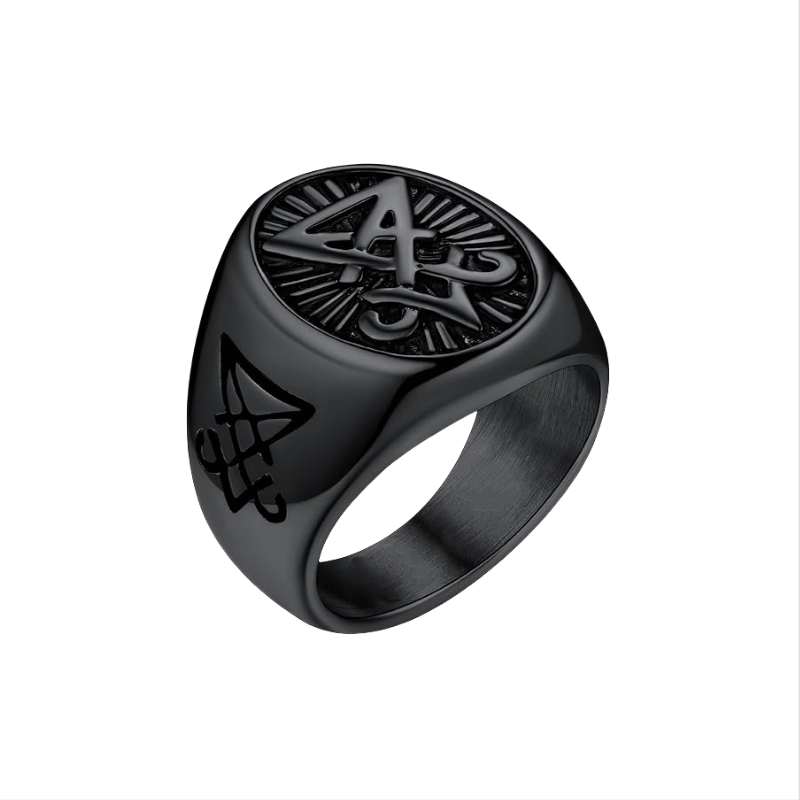เครื่องประดับซาตานแหวนตราสัญลักษณ์รูปสัญลักษณ์รูปสัญลักษณ์ของลูซิเฟอร์ซาตานสำหรับผู้ชายผู้หญิงแหวนออกแบบได้ตามต้องการ