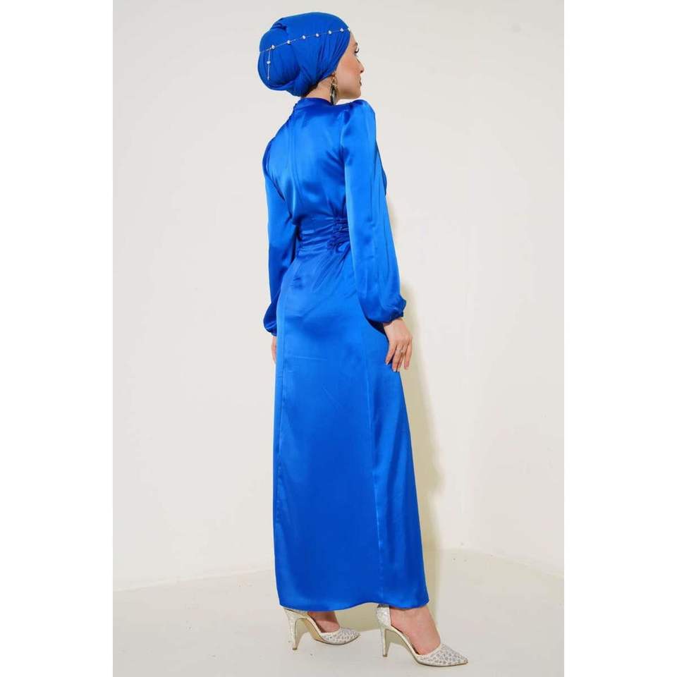 ชุดเดรสผ้าซาตินพร้อมเชือกด้านข้างแต่งด้วยเชือก