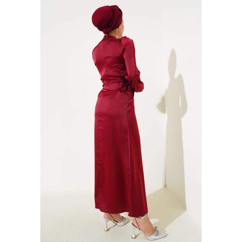 ชุดซาตินพร้อมเชือกด้านข้างรายละเอียดเบอร์กันดี
