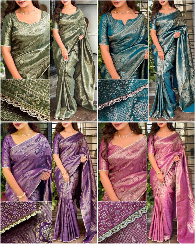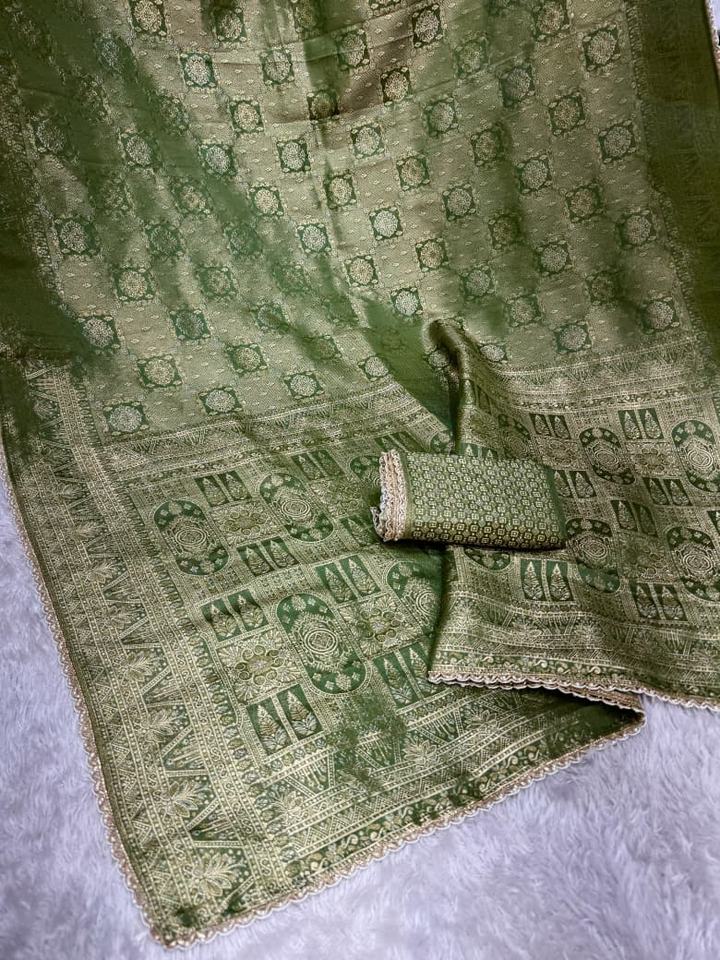 ผ้าไหมซาตินแจ็คการ์ดพร้อมลายปักดิ้นทอง ขอบผ้าปักระยิบระยับด้วยมุก สำหรับผู้หญิง ผลิตในอินเดีย มีสินค้าพร้อมส่ง