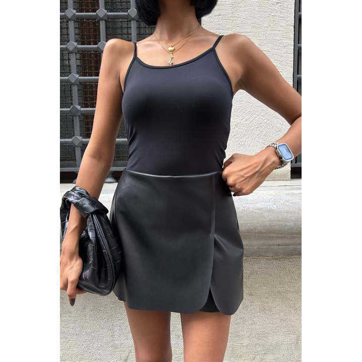 กระโปรงหนังมินิผ้าซาติน 4054 ผ้าเนื้อมันวาว