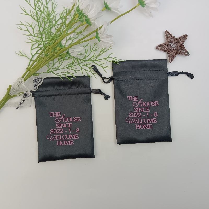กระเป๋าผ้าซาตินมีโลโก้กระเป๋าหูรูดผ้าซาตินสำหรับเครื่องประดับกระเป๋าเครื่องประดับผ้าซาตินพร้อมโลโก้ที่กำหนดเอง