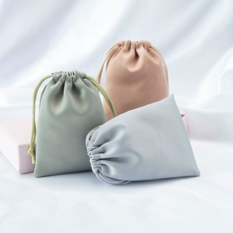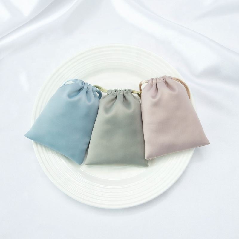 กระเป๋าผ้าไหมซาตินทรงสี่เหลี่ยมพับเก็บได้หรูหรามีเชือกผูกปากถุงใส่เครื่องประดับโลโก้ออกแบบได้เองสำหรับการแต่งหน้าและบรรจุภัณฑ์เสื้อผ้า