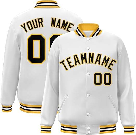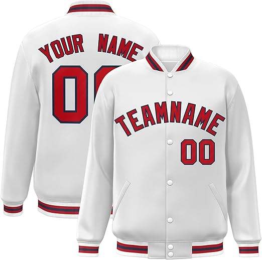 เสื้อแจ็กเก็ตผ้าซาตินพร้อมปกตั้งสำหรับทีมกีฬาคลับชื่อทีมเบสบอลเสื้อแจ็คเก็ตมหาวิทยาลัยเลตเทอร์แมนตามสั่ง