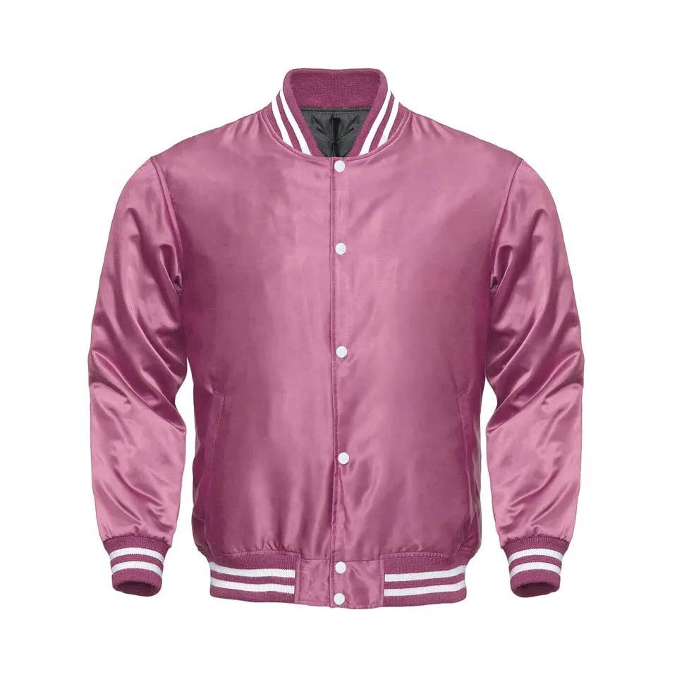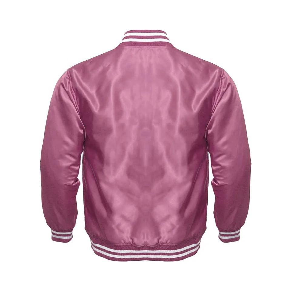 เสื้อแจ็คเก็ตวาร์ซิตี้สีชมพูมารูนผ้าซาติน พรีเมียมคุณภาพสูง แบบตัวอักษร Letterman สำหรับวิทยาลัย