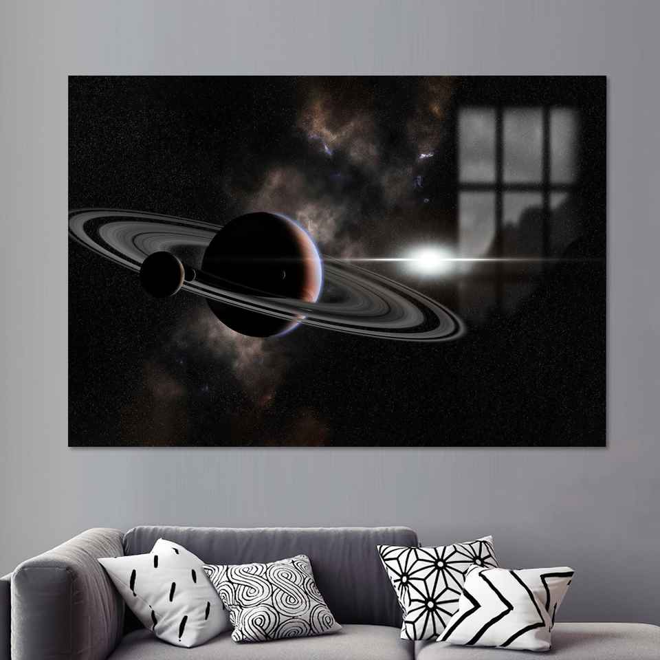 ภาพพิมพ์บนผ้าใบลายดาวเสาร์: ศิลปะติดผนังระบบสุริยะจักรวาล, แก้ว