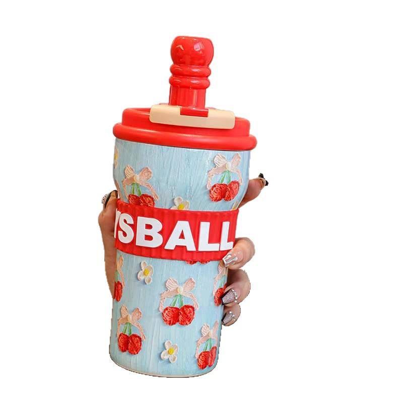 Sball Cherry Red 600Ml Stainless Steel Tumbler Insulated Travel Mug With Straw For All Occasions