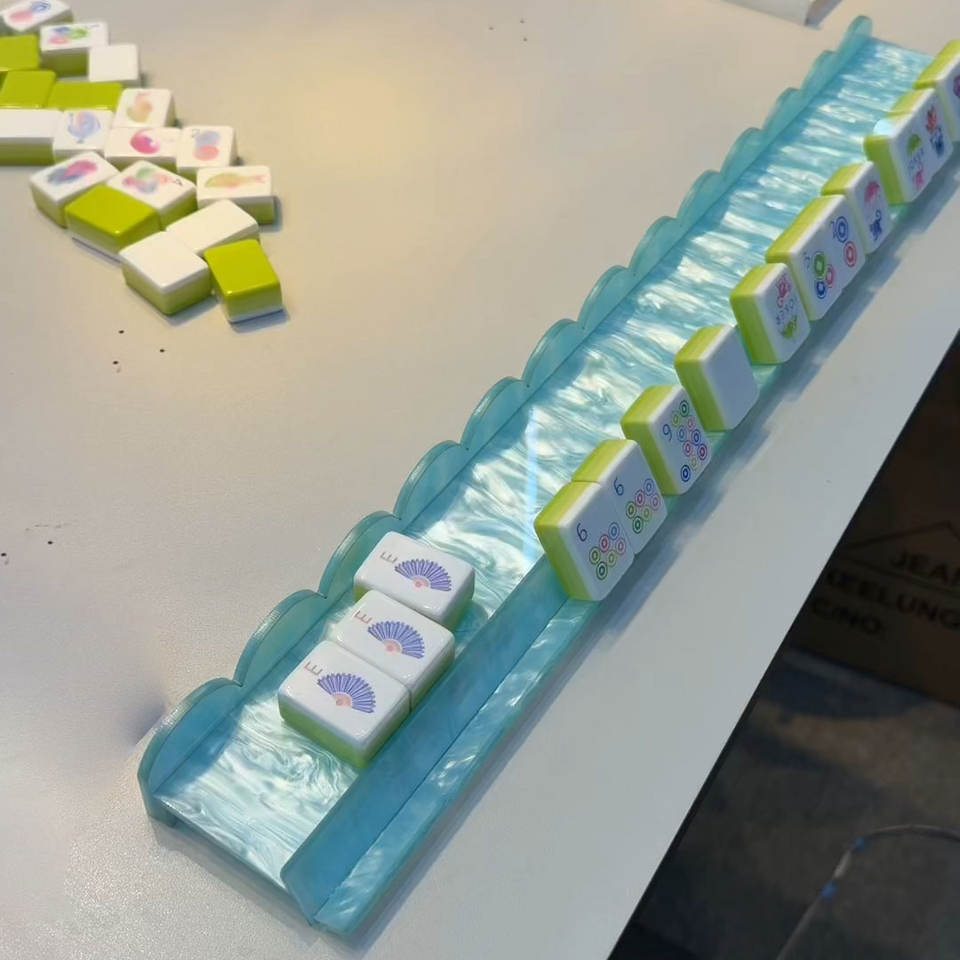 Pearl Mahjong Racks 17.5Inch 20Inch Acrylic Scalloped Mahjong Racks and Pushers