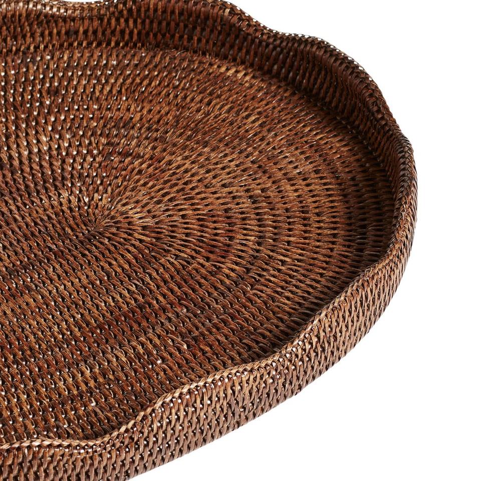 ถาดหวายรูปไข่ลายหอยเชลล์ งานแฮนด์เมด ถาดเสิร์ฟหวายธรรมชาติ ถาดตกแต่ง ถาดจัดระเบียบบนโต๊ะ ของตกแต่งบ้านสไตล์โบโฮ