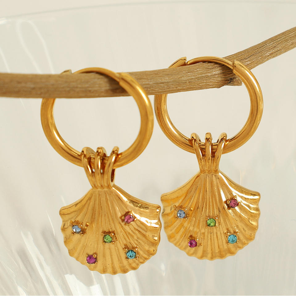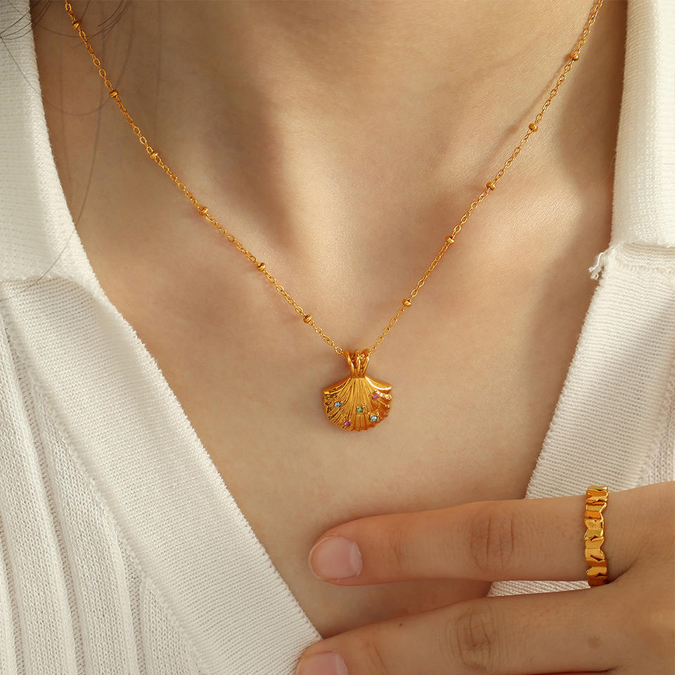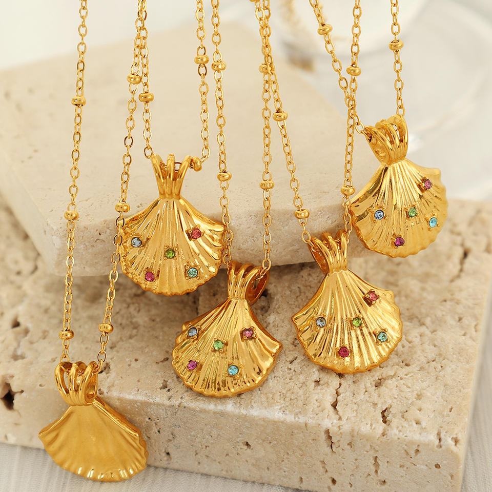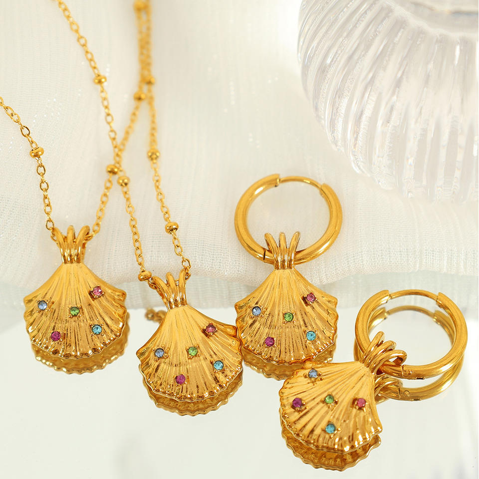 ชุดสร้อยคอจี้เปลือกหอยเชลล์และต่างหู ทองสแตนเลส เครื่องประดับสำหรับงานปาร์ตี้ แฟชั่นผู้หญิง ดีไซน์สัตว์ทะเล