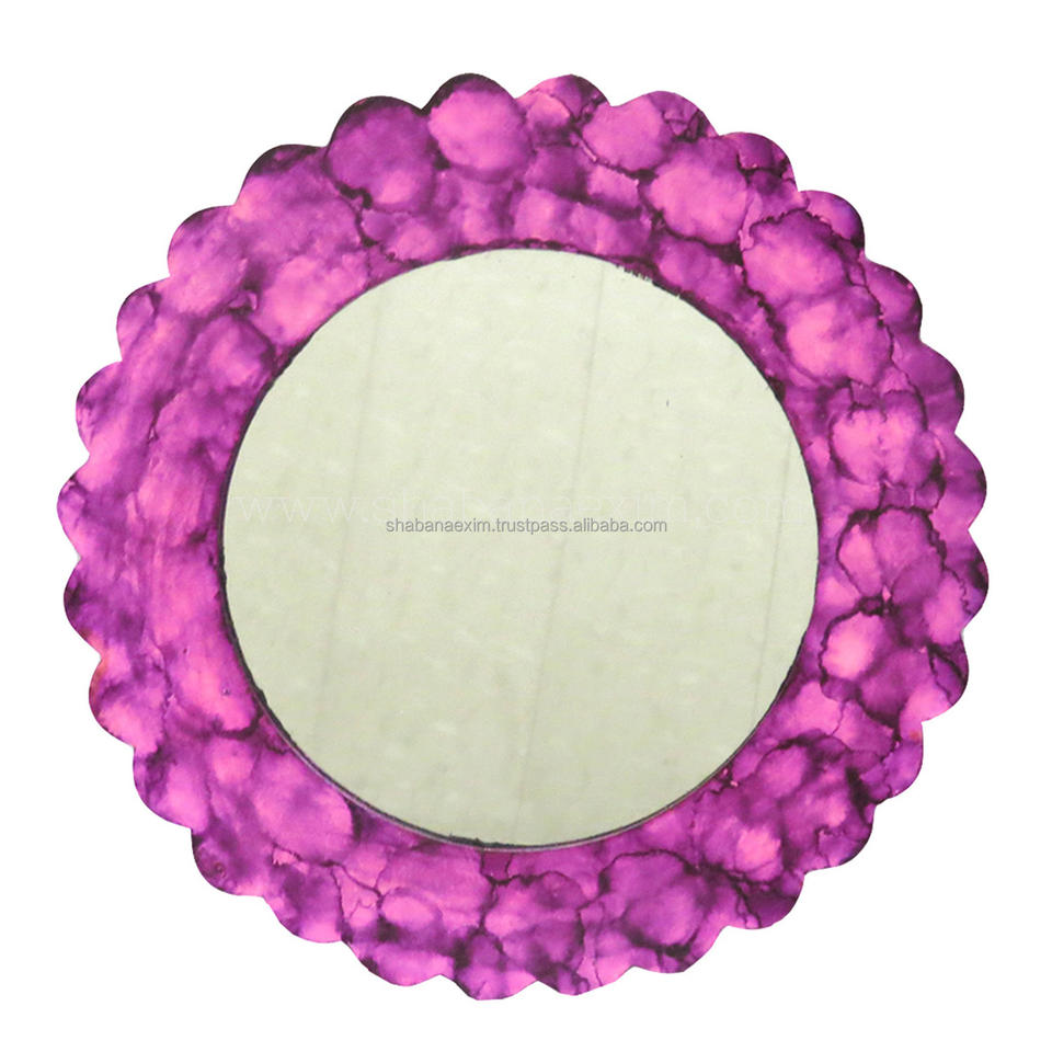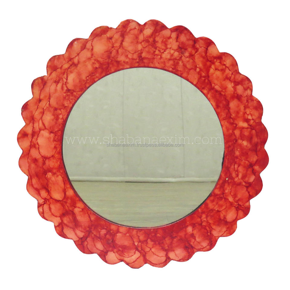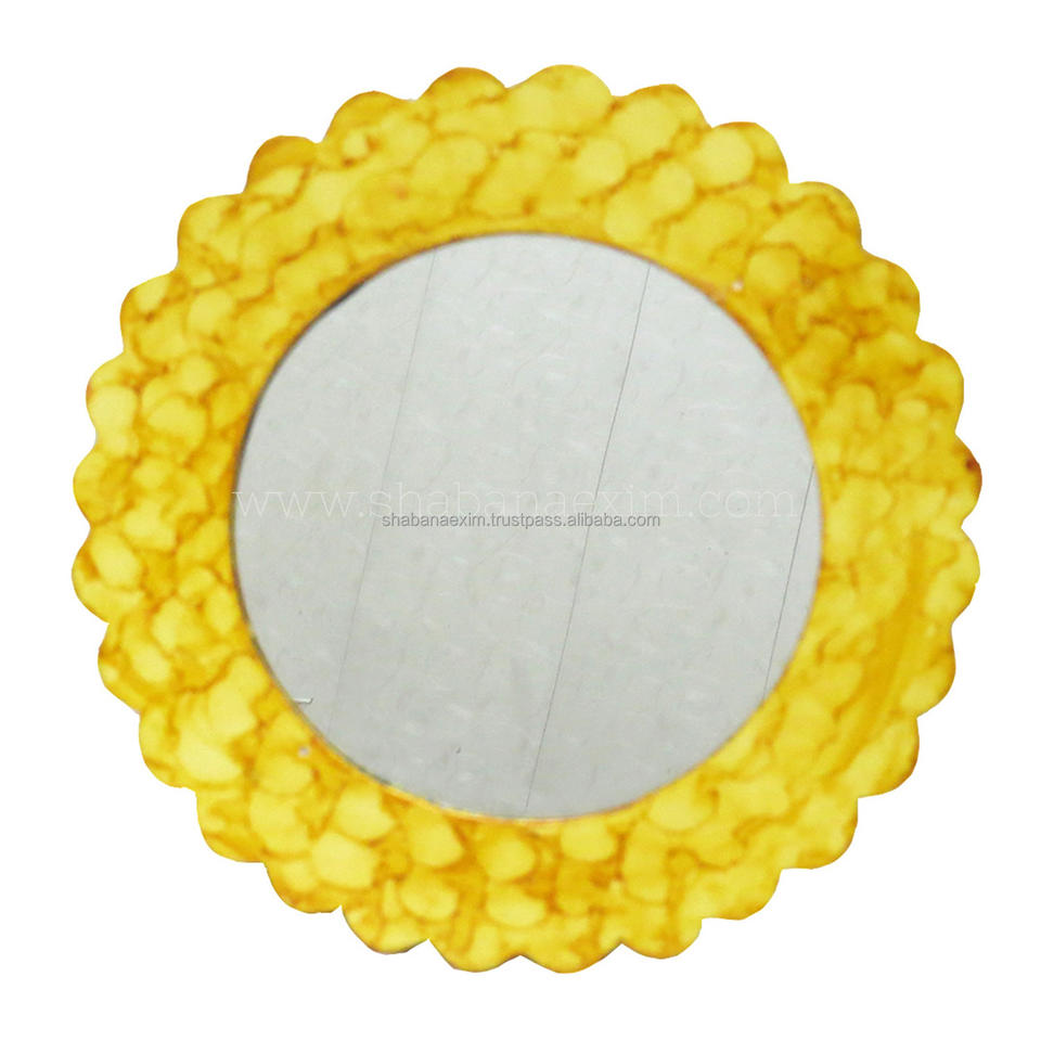 กระจกตกแต่งติดผนังทรงกลมขอบหยัก สไตล์ศิลปะตกแต่ง สำหรับห้องนั่งเล่น โต๊ะเครื่องแป้ง หรือกระจกแต่งหน้า
