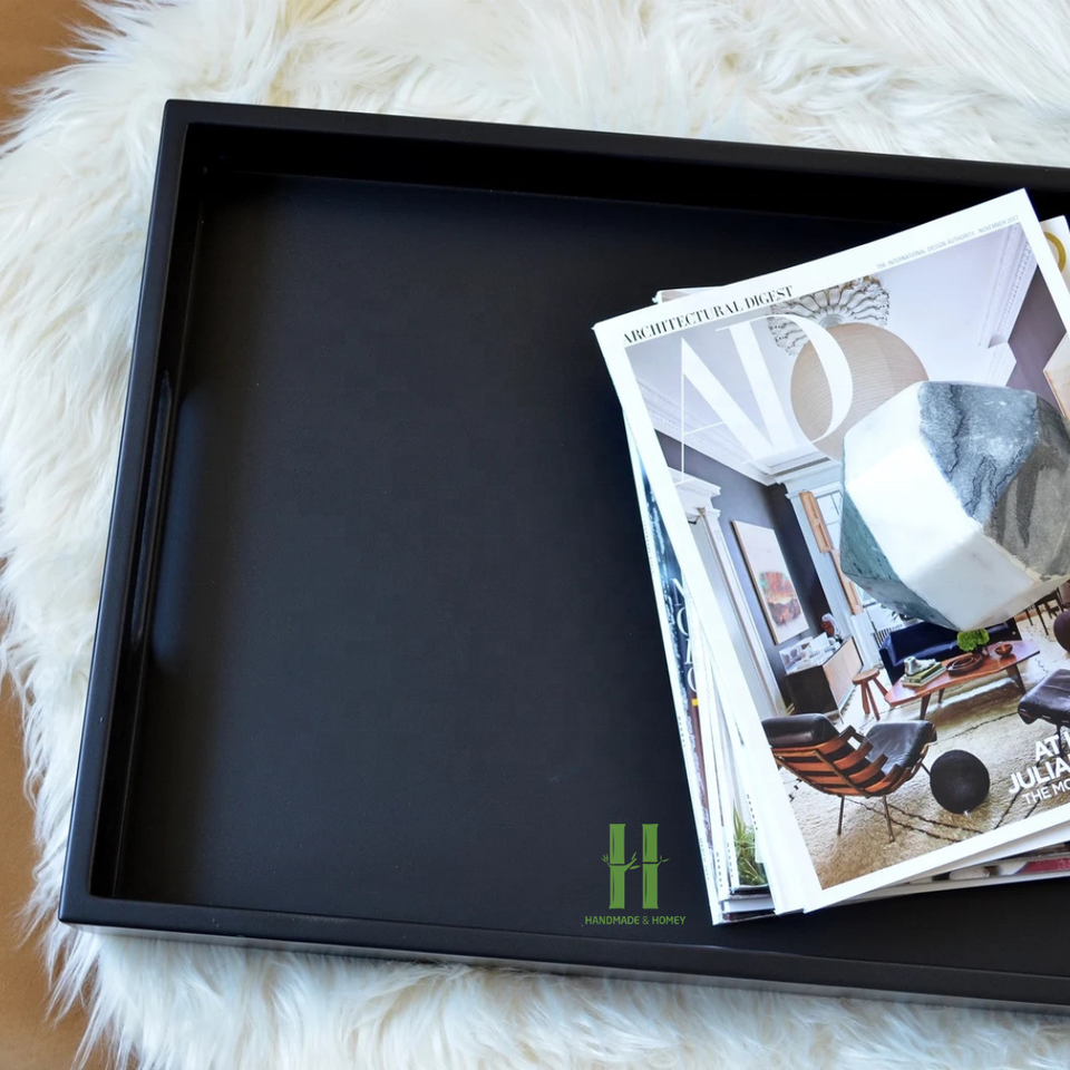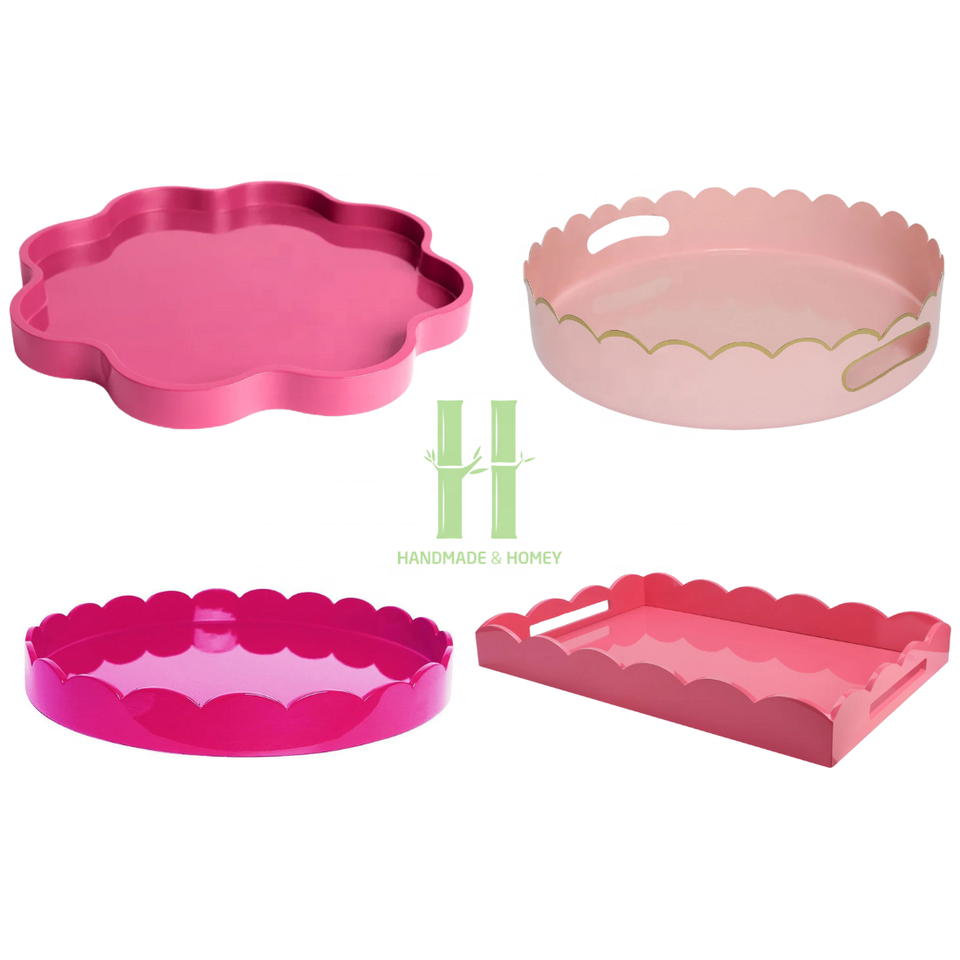 ถาดเสิร์ฟไม้เอ็มดีเอฟเคลือบเงาลายสแกลลอปสุดหรู เป็นมิตรกับสิ่งแวดล้อม วาดลายด้วยมือ งานฝีมือ HNH สีชมพูสไตล์โบโฮ ออกแบบโลโก้ตามสั่ง ของขวัญทันสมัย ผลิตอย่างประณีต