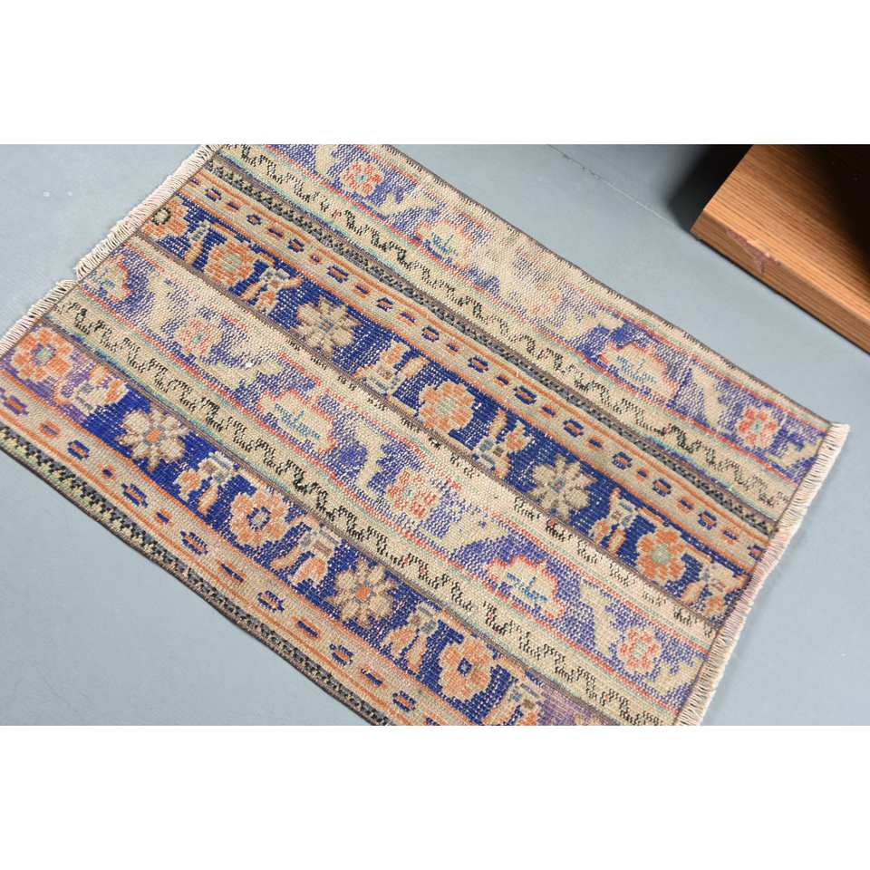Scandi-สีฟ้าพรมขนสัตว์ตุรกีวินเทจ220x310ซม. พื้นที่ขนาดใหญ่สี่เหลี่ยมผืนผ้าห้องโถงเย็บปะติดปะต่อกันน้ำยางออกแบบนามธรรมสำหรับทางเดิน