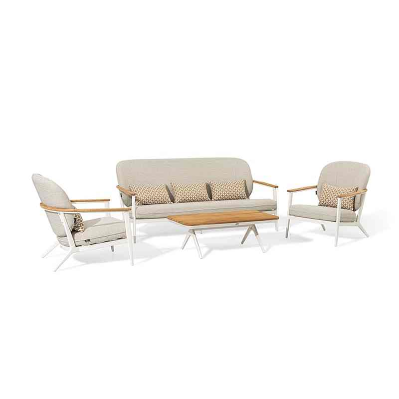 Scandi-ชุดโซฟาที่เรียบง่ายพร้อมเก้าอี้เท้าแขนแสนสบายและโต๊ะเรียบง่ายผสมผสานความสบายและการใช้ชีวิตกลางแจ้งสไตล์คาเฟ่