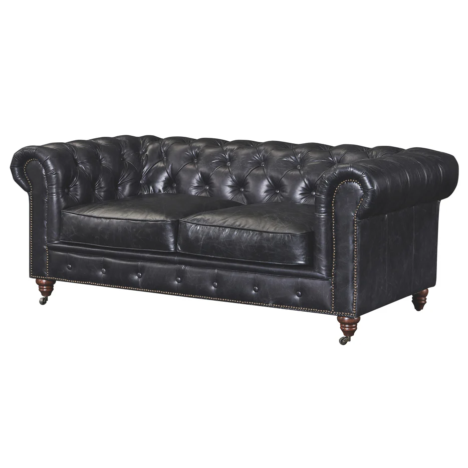 ชื่อผลิตภัณฑ์:โซฟาหนังสีดำสไตล์เชสเตอร์ฟิลด์
