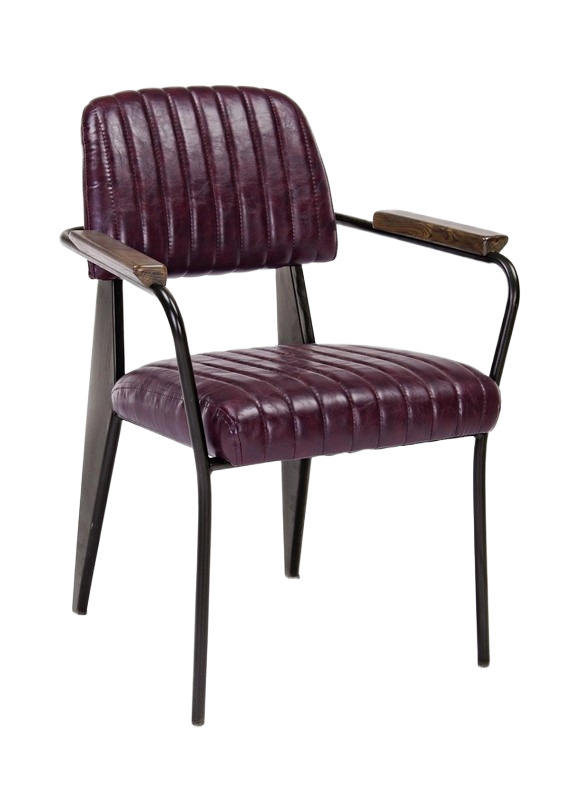 เก้าอี้ร้านอาหารหุ้มเบาะหนังสีแทนพร้อมกรอบโลหะสีดำดีไซน์สแกนดิเนเวียน