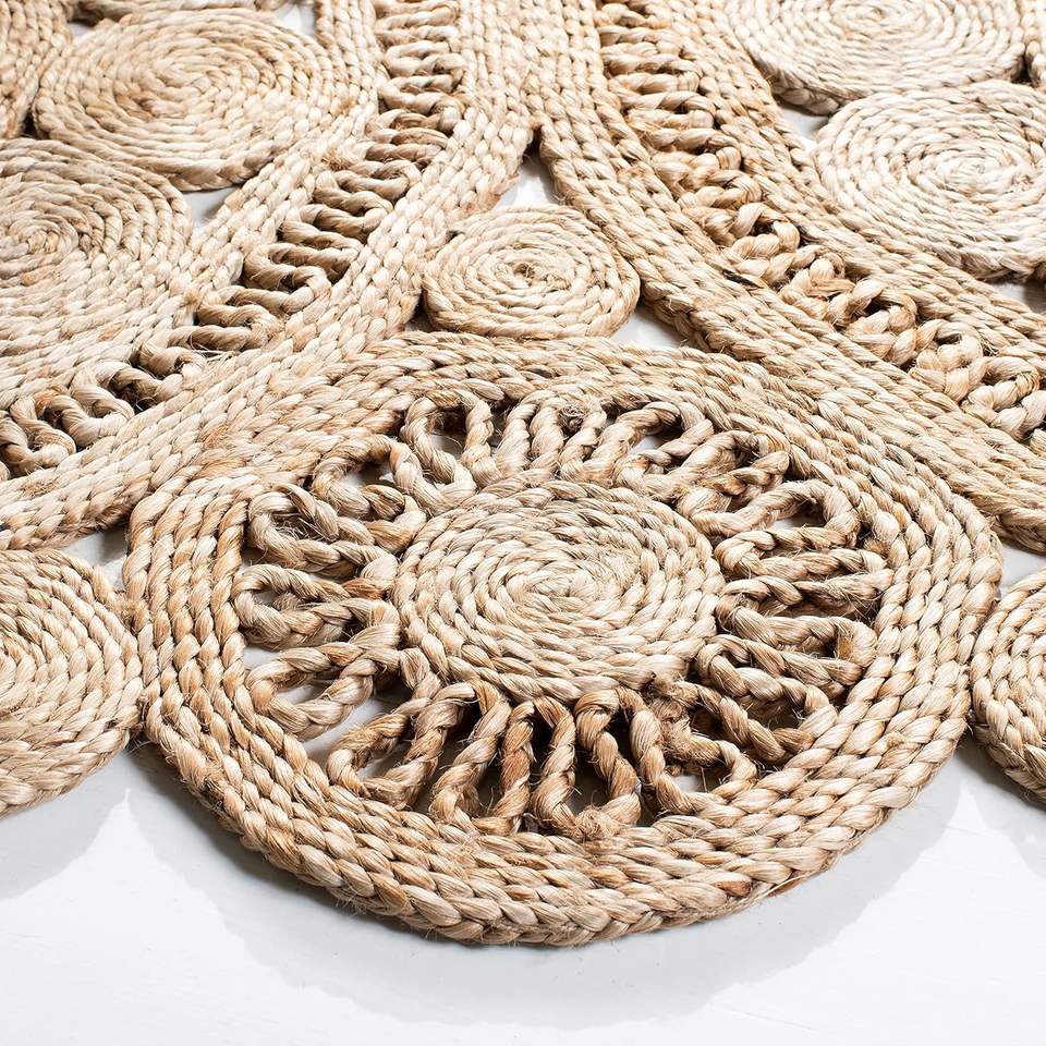 พรมปูพื้นทรงกลมสไตล์สแกนดิเนเวียนโมเดิร์น ทำจากหวายและหญ้าทะเล ทอมือ เป็นมิตรกับสิ่งแวดล้อม เหมาะสำหรับบ้าน สตูดิโอ ร้านขายเสื้อผ้า และการถ่ายภาพ