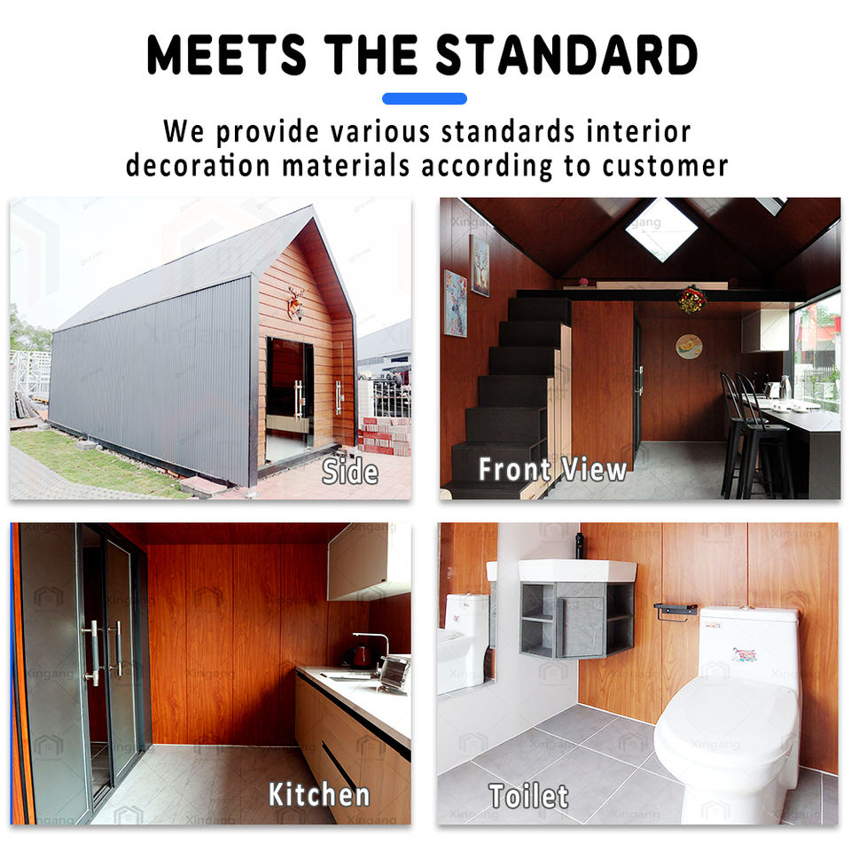 บ้านสำเร็จรูปโครงสร้างเหล็กสไตล์สแกนดิเนเวียน 2 ชั้น หลังคาทรงสามเหลี่ยม ดีไซน์ทันสมัย กันน้ำ สร้างเร็ว พร้อมฉนวน บ้านขนาดเล็กสำหรับใช้งานกลางแจ้ง