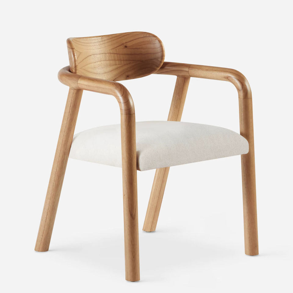 เก้าอี้ทานข้าวไม้สักแท้สไตล์สแกนดิเนเวียน พร้อมโครงแขนโค้งมนเรียบหรู และผิวสัมผัสธรรมชาติ เหมาะสำหรับเฟอร์นิเจอร์ร้านอาหาร