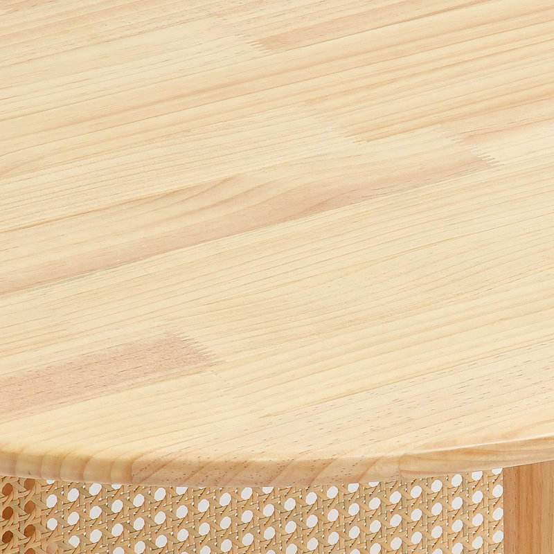 Scandinavian โต๊ะกาแฟหวายทรงกลมสไตล์บ้านไร่วินเทจพร้อมกระจกนิรภัยท็อปชั้นเดียวสำหรับห้องนั่งเล่น