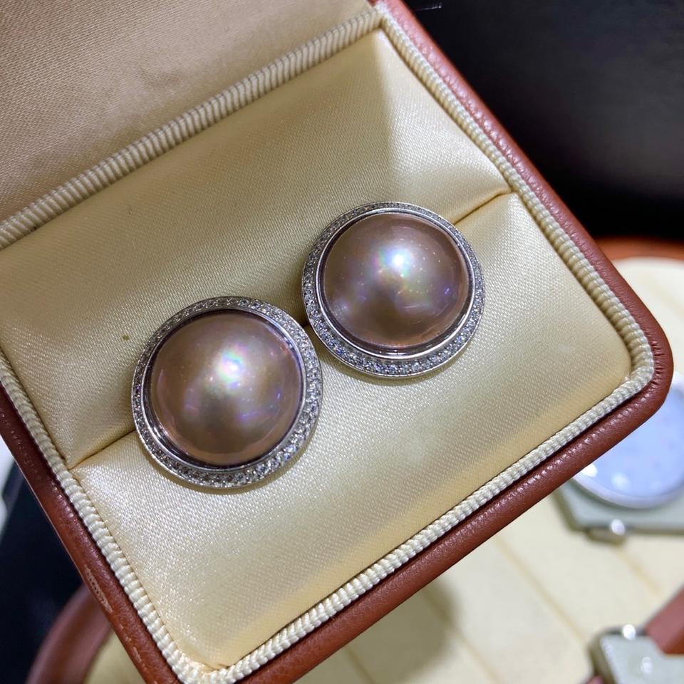 ต่างหูมุกเซาท์ซีทองคำแท้หายาก ขนาด 15-16 มม. ทรงกลม ตัวเรือนทองคำ 18K แบบฝังขอบ ดีไซน์คลาสสิก เครื่องประดับสำหรับผู้หญิง เกรด A