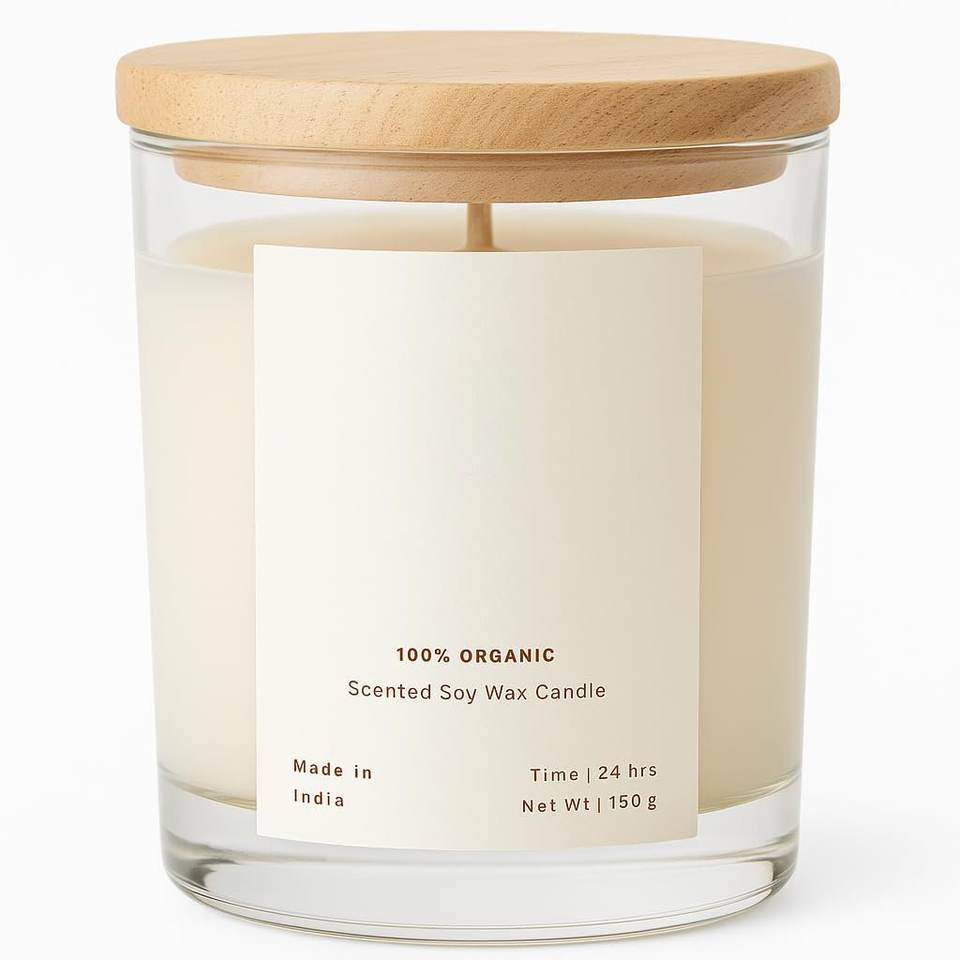 เทียนหอมในขวดแก้วใสพร้อมฝาไม้ | น้ำมันหอมระเหยสำหรับตกแต่งบ้าน ขนาด 150 กรัม แบรนด์ส่วนตัว