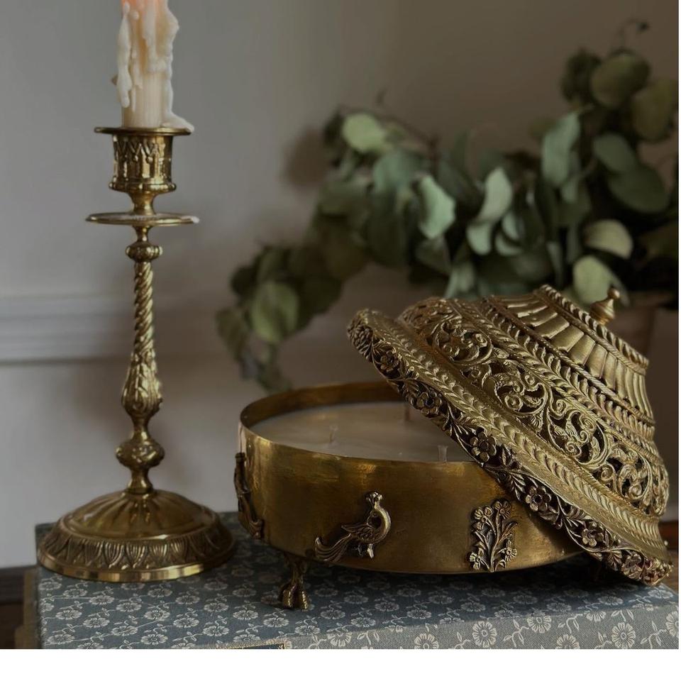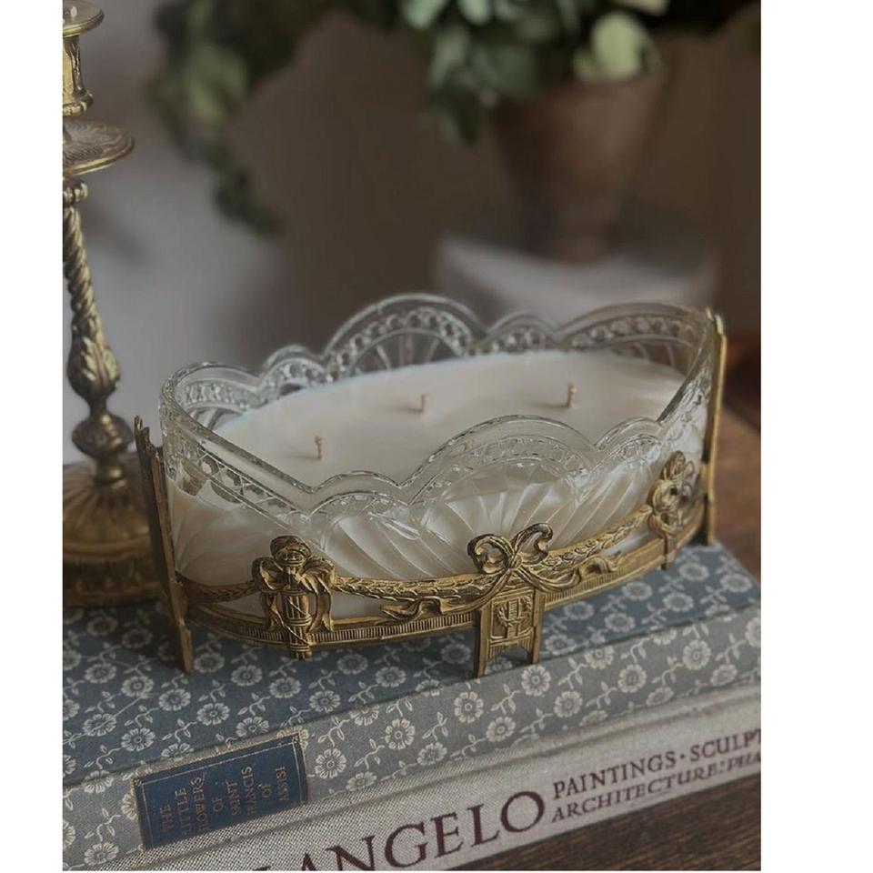 เทียนหอมจากขี้ผึ้งถั่วเหลืองในโถแก้วตกแต่งด้วยทองเหลืองและอะลูมิเนียมแบบดั้งเดิม เหมาะสำหรับโรงแรม ใช้เสิร์ฟ กลิ่นหอม ตกแต่งบ้าน ตกแต่งโต๊ะ