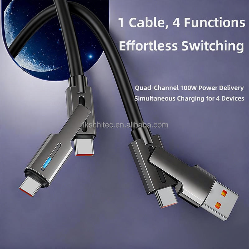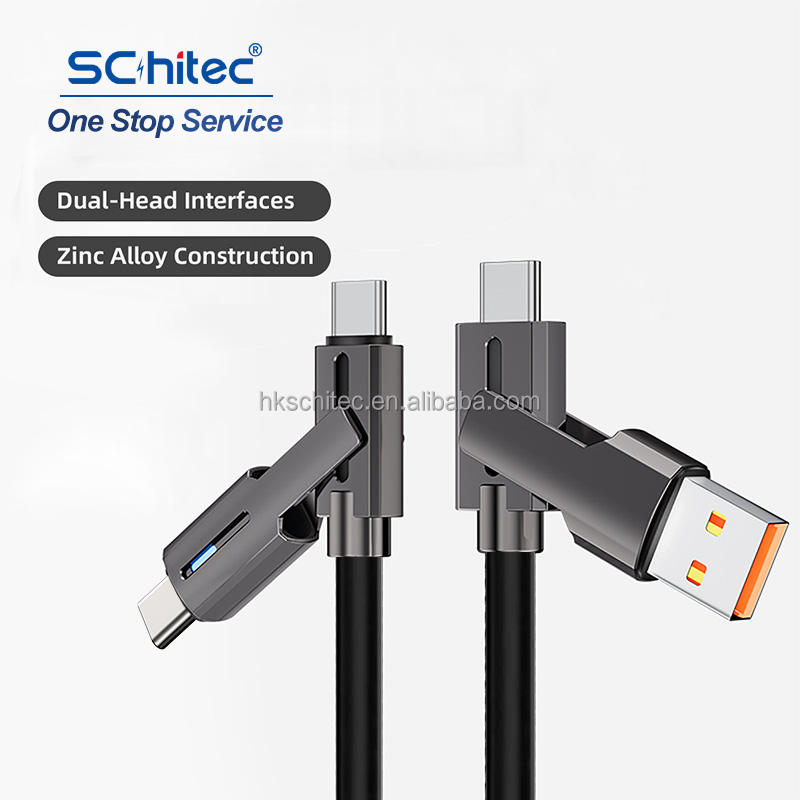 Schitec สายชาร์จ4-in-1Rotatable ซิงค์อัลลอยด์ USB-A 100W & USB-C TO c/l Multi Combo สายเคเบิลข้อมูลซิงค์เร็วสำหรับ iPhone