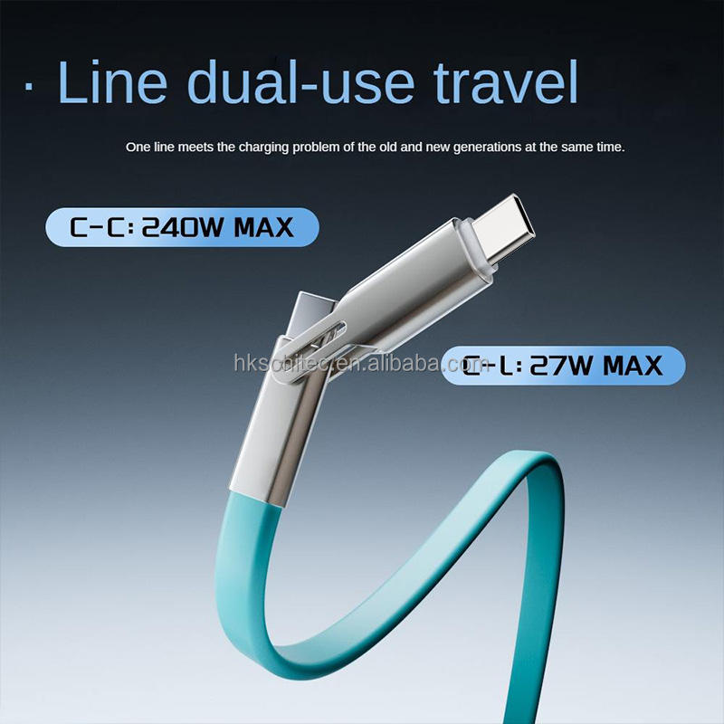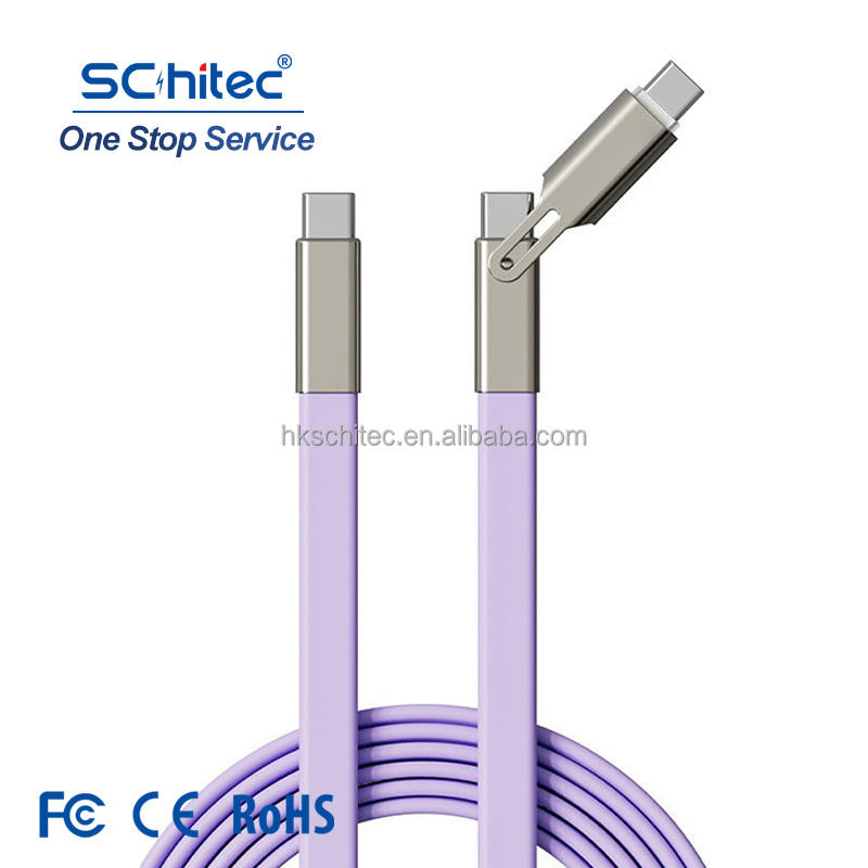 Schitec macoron 2-in-1 TPE สายแบน1.2m 240W USB C TO C & L Combo ชาร์จเร็ว240W สาย Type C สำหรับ iPhone และ Android