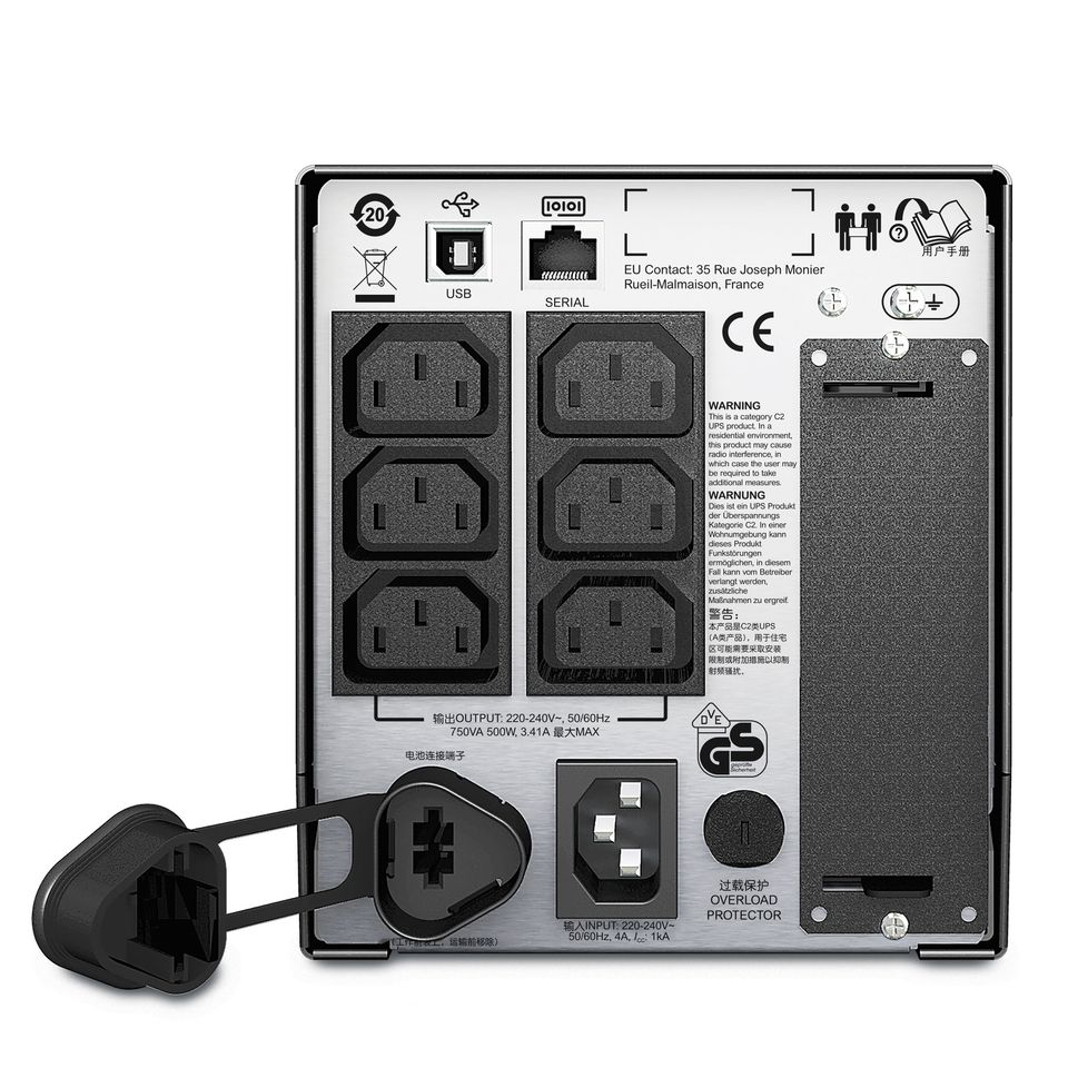 เครื่องสำรองไฟฟ้าแบบ Line Interactive Schneider APC Smart-UPS รุ่น SMT750I-CH ระบบเฟสเดียว รองรับการเชื่อมต่อเครือข่าย 50Hz 500W/750VA 230V หน้าจอ LCD แบตเตอรี่ในตัว แบบตั้งพื้น