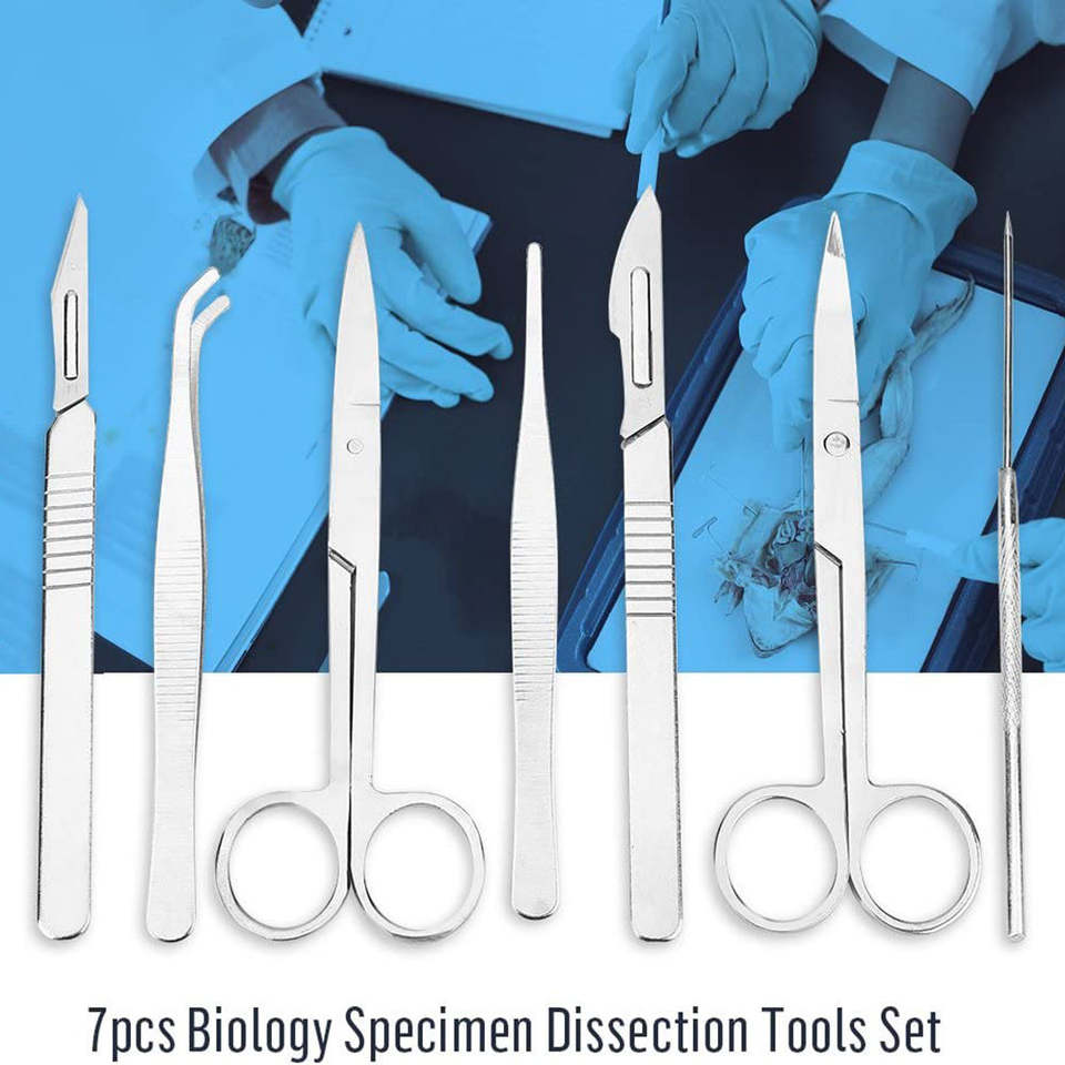 ชุดเครื่องมือผ่าตัดแมลง 7 ชิ้น/ชุด สำหรับโรงเรียน ยี่ห้อ Dentavex ประกอบด้วยเข็มผ่าตัดแมลง คีมผ่าตัด และกรรไกร