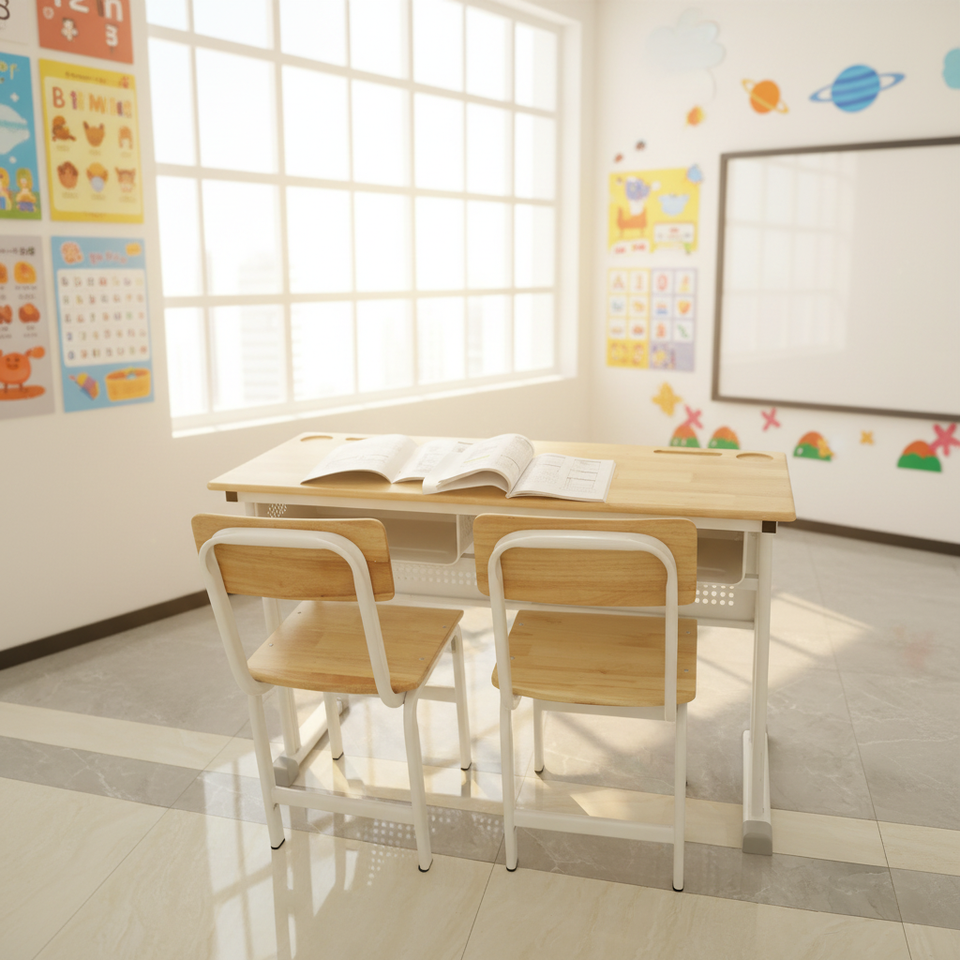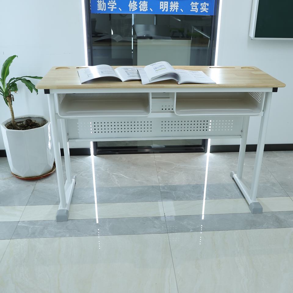 School Furniture Simple Design Steel and Rubber Wood Combination Double Student Desk and Chair