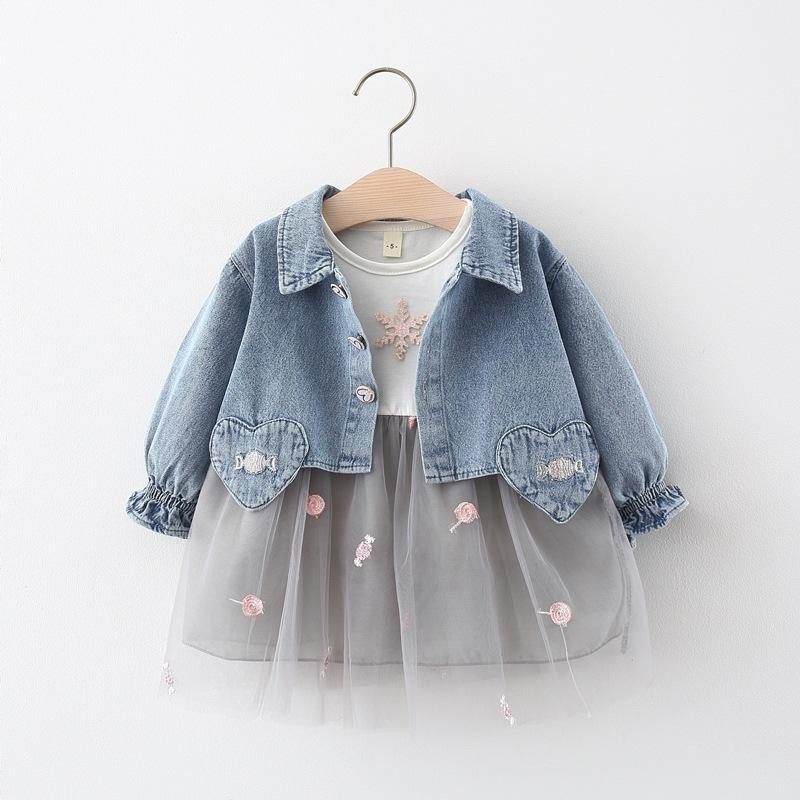 ชุดเดรสเด็กผู้หญิงสองชิ้น ประกอบด้วยเสื้อสเวตเตอร์และเดรส