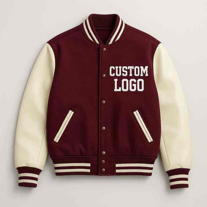 เสื้อแจ็คเก็ตเด็กนักเรียนสีแดง เสื้อแจ็คเก็ตเด็กผู้ชาย เสื้อแจ็คเก็ตเบสบอล เสื้อแจ็คเก็ตวาร์ซิตี้ ปักลายเชนิลล์ ทรงเข้ารูป