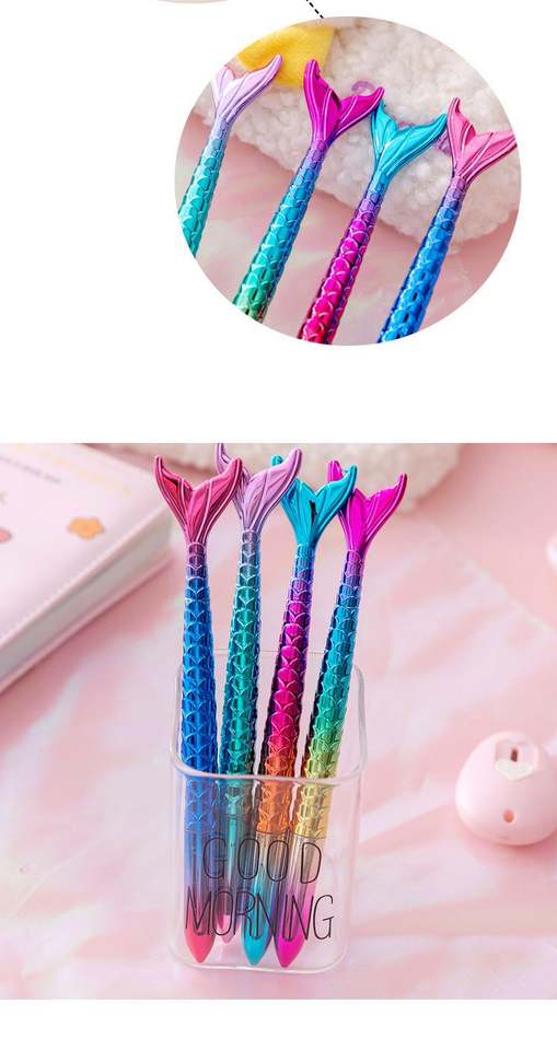 ปากกาลูกลื่นนางเงือกพลาสติกสีรุ้งสำหรับเด็กผู้หญิงเครื่องเขียนสำหรับสำนักงานโรงเรียน