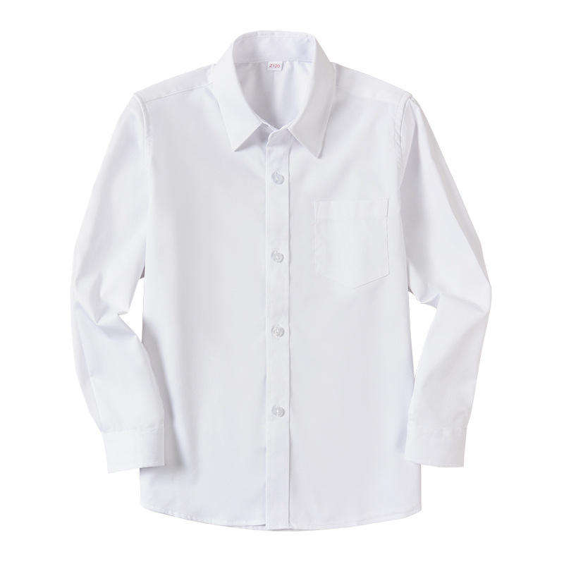 แบบเสื้อนักเรียนชาย เสื้อนักเรียนเด็กประถม สีขาว ผ้าโพลีเอสเตอร์ผสมคอตตอน ไม่ยับ